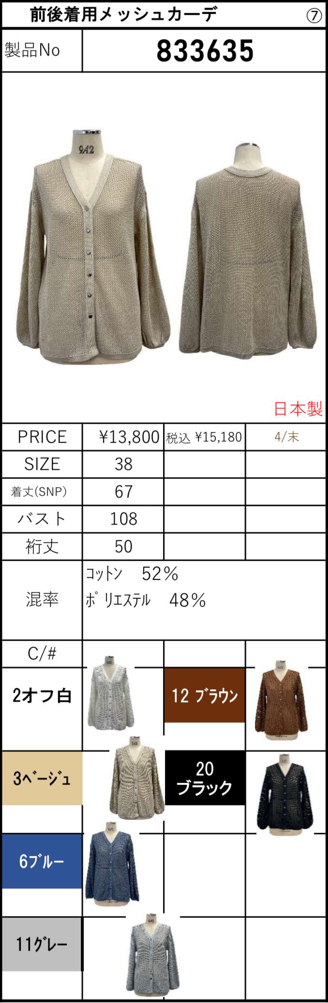 予約販売【 ayane 】前後着用メッシュカーデ(833635)