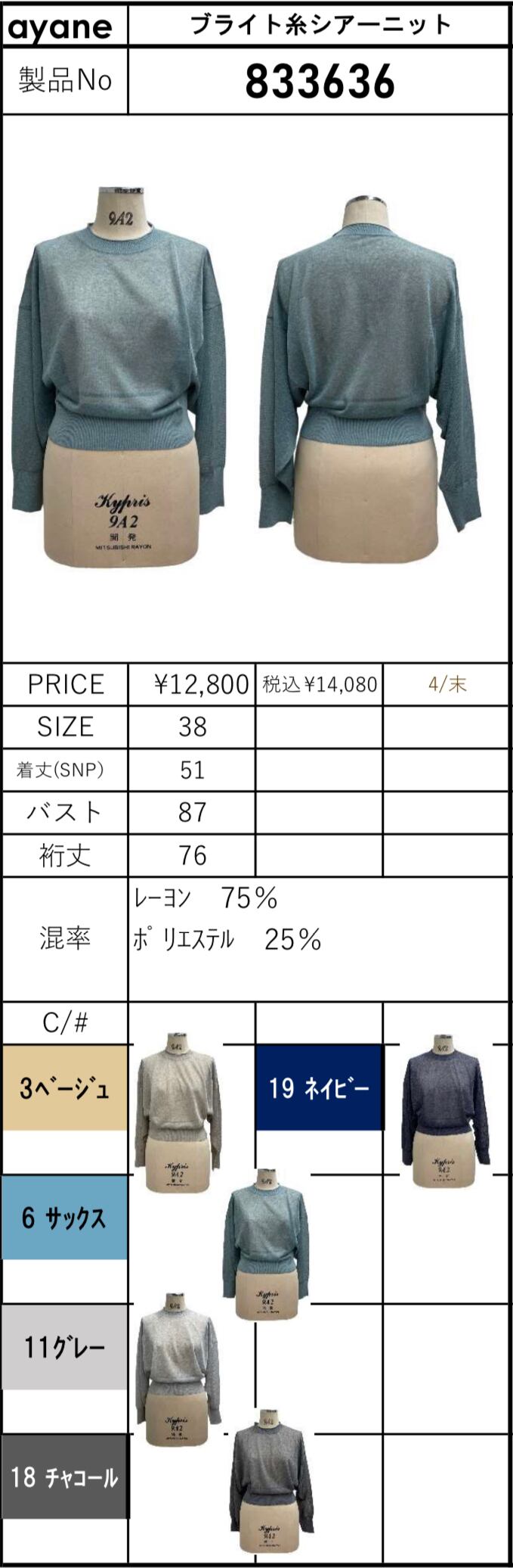 予約販売【 ayane 】ブライト糸シアーニット(833636)