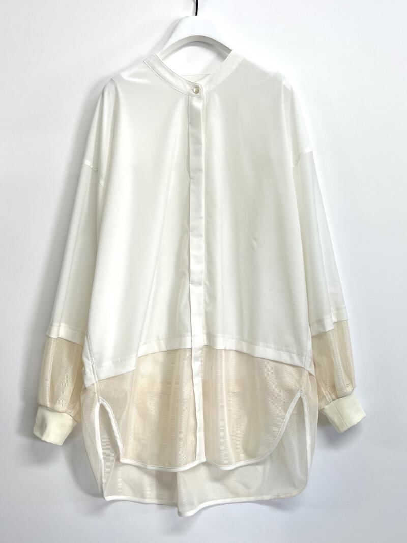 メッシュ素材を大胆に切り替えたデザインシャツです。