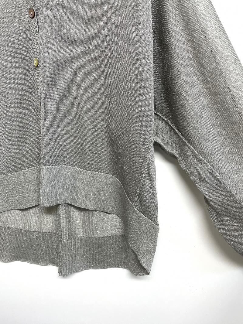 ラメ糸が混紡された糸を採用したニットカーディガン。