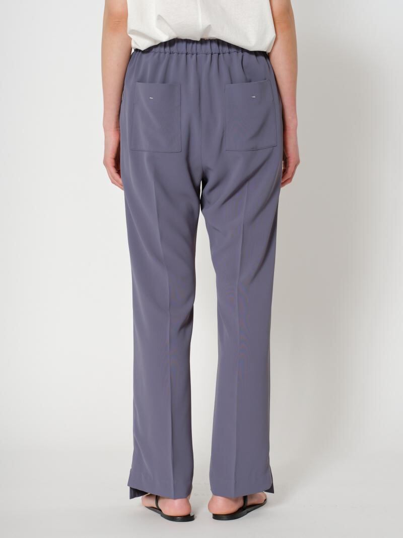 綿のようなマットな質感の薄手ポリエステル生地を使用したストレートシルエットのイージーパンツです。