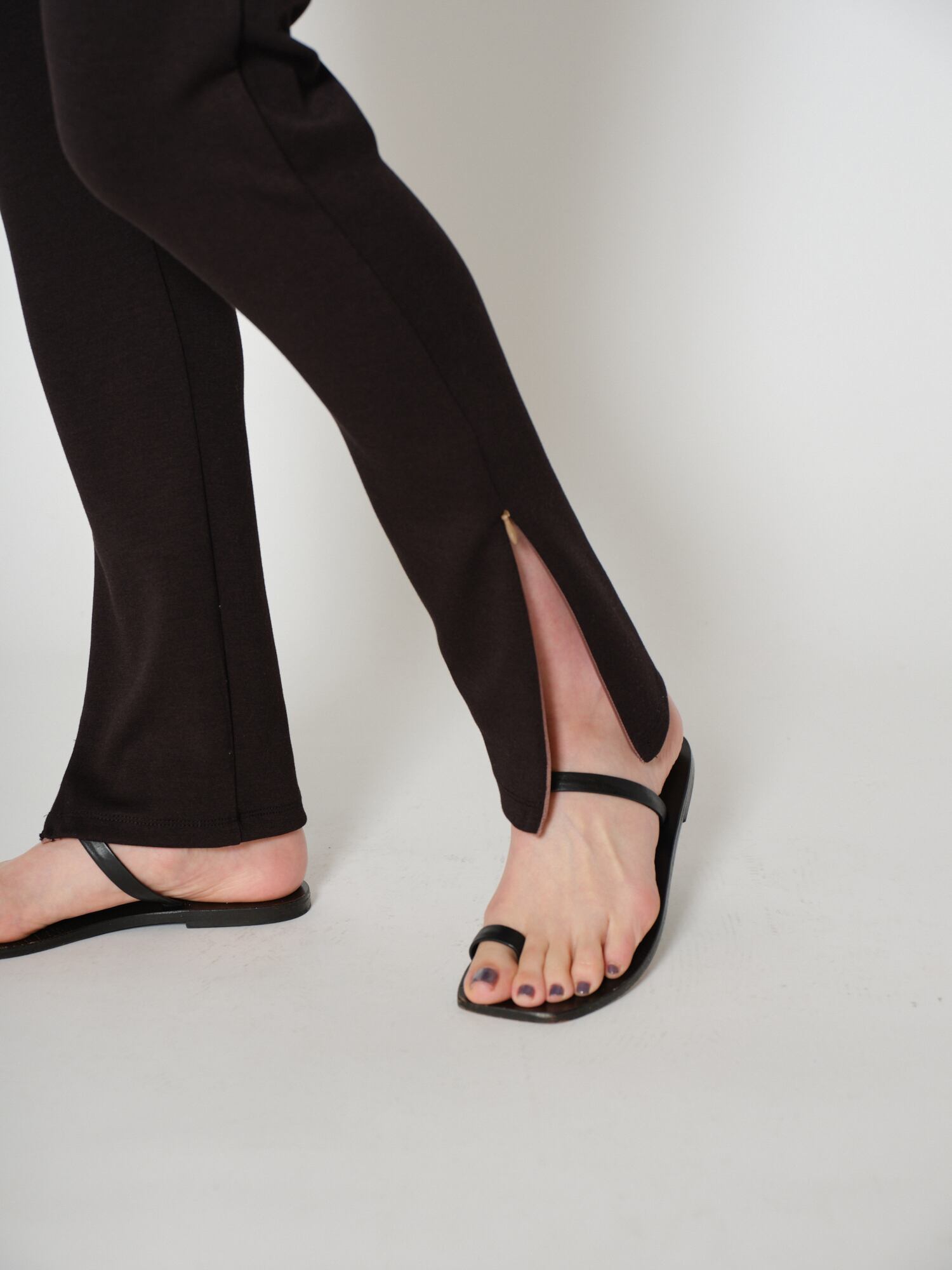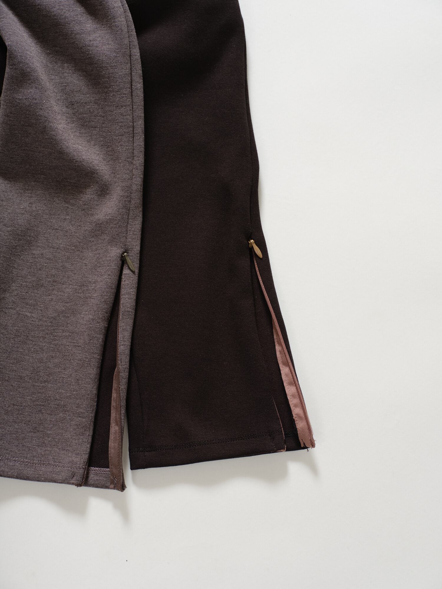 裾のファスナーは開けた時に甲の上に乗ってきれいに見えるパターンになっていて、スニーカーやヒールなどとも相性が良いです。