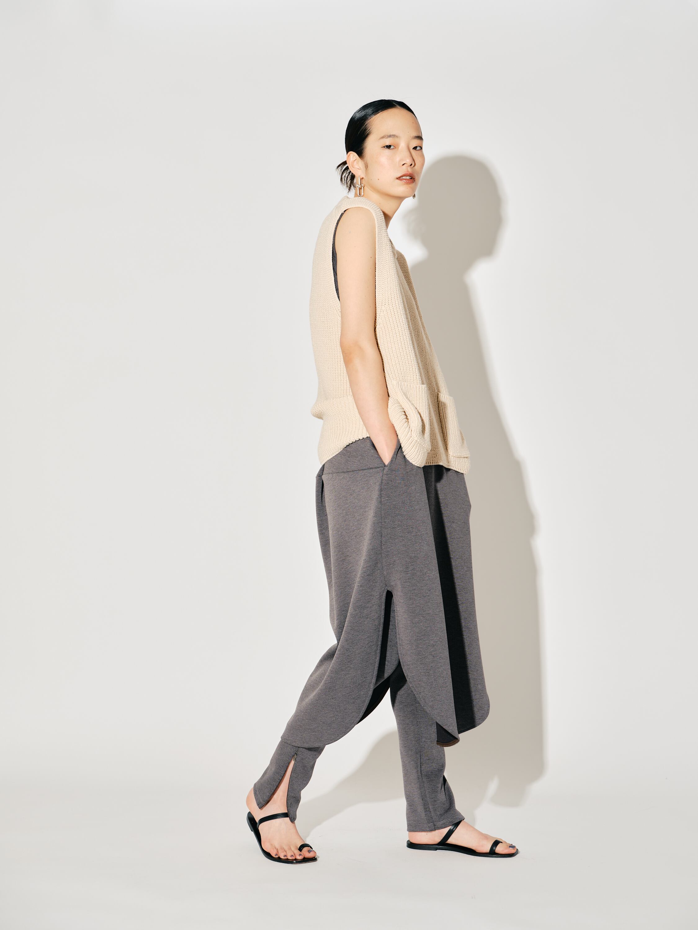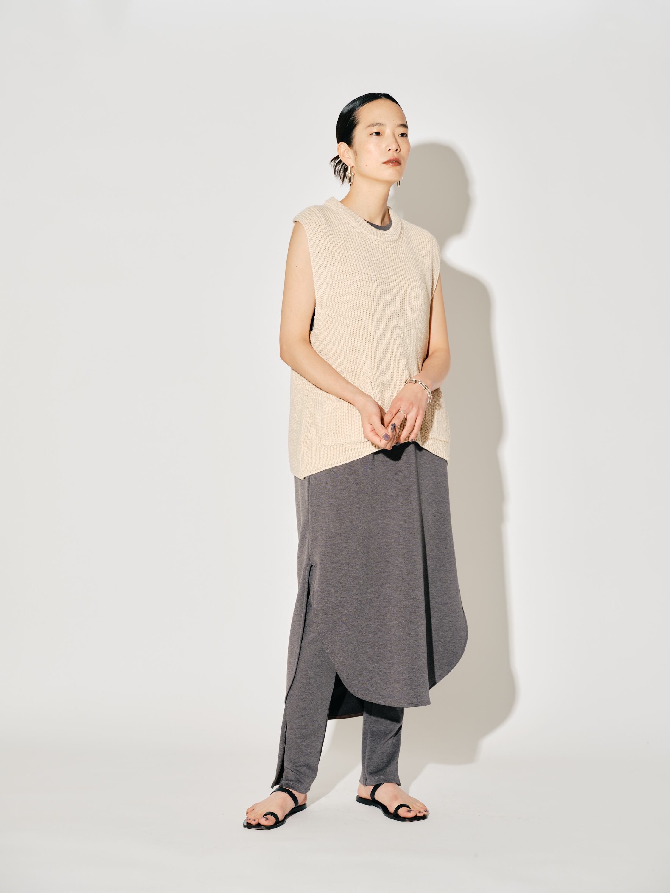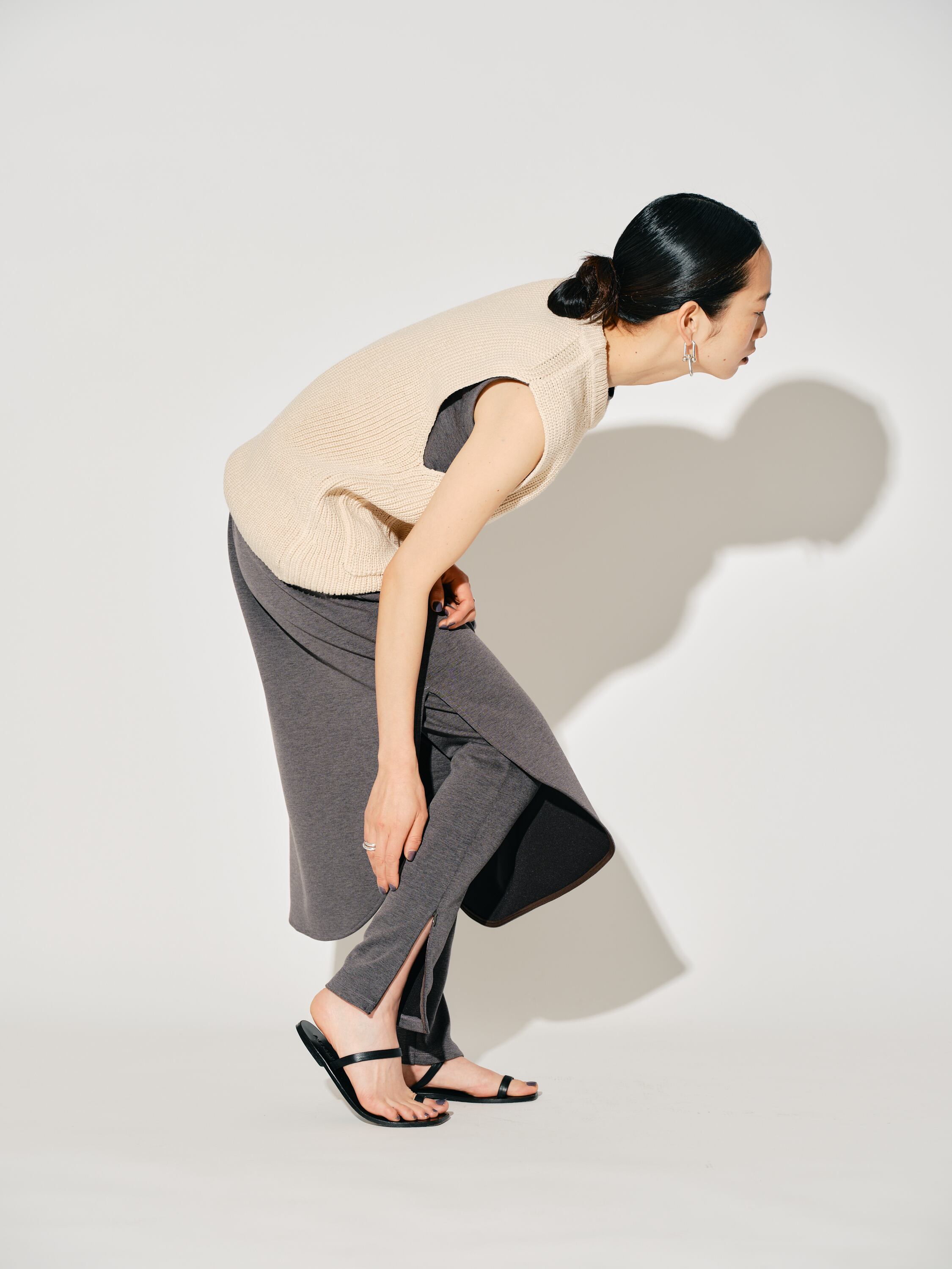 同素材のレギンスと合わせて作るレイヤードスタイルも今年らしくておすすめです。