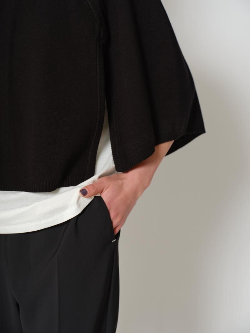 ハイゲージのしっかりと詰まった編地できれいな印象の素材感です。