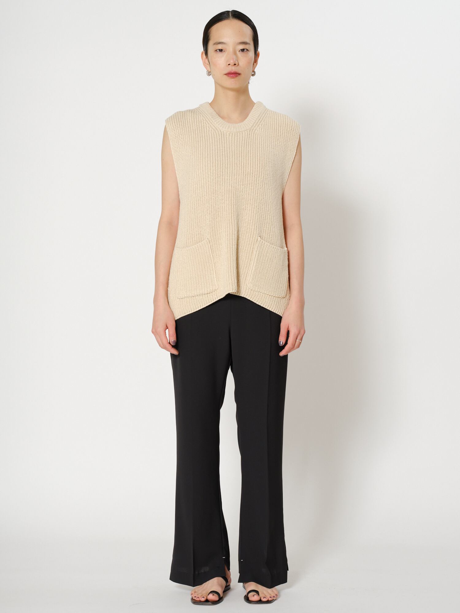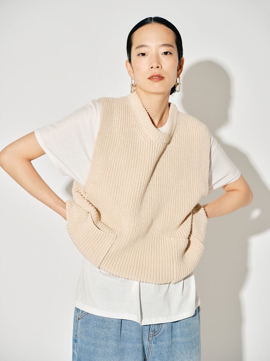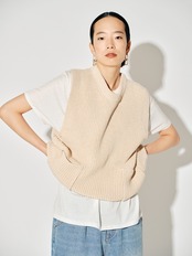 1枚でトップスとしても、Tシャツとレイヤードしてベストとしても、季節の変わり目に秋のムードをプラスできるアイテムです。