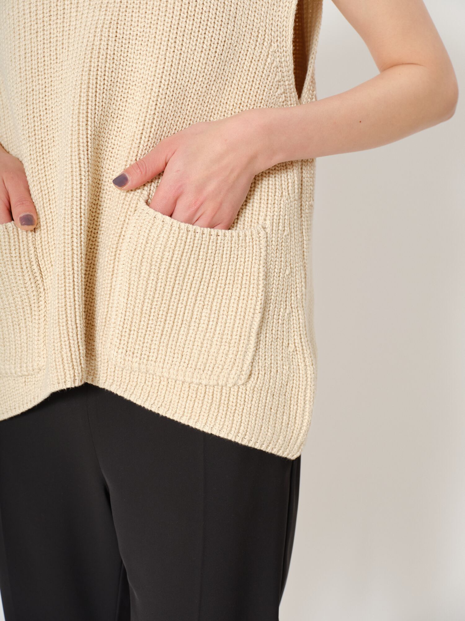 ミドルゲージで編立てた畦編みベストです。