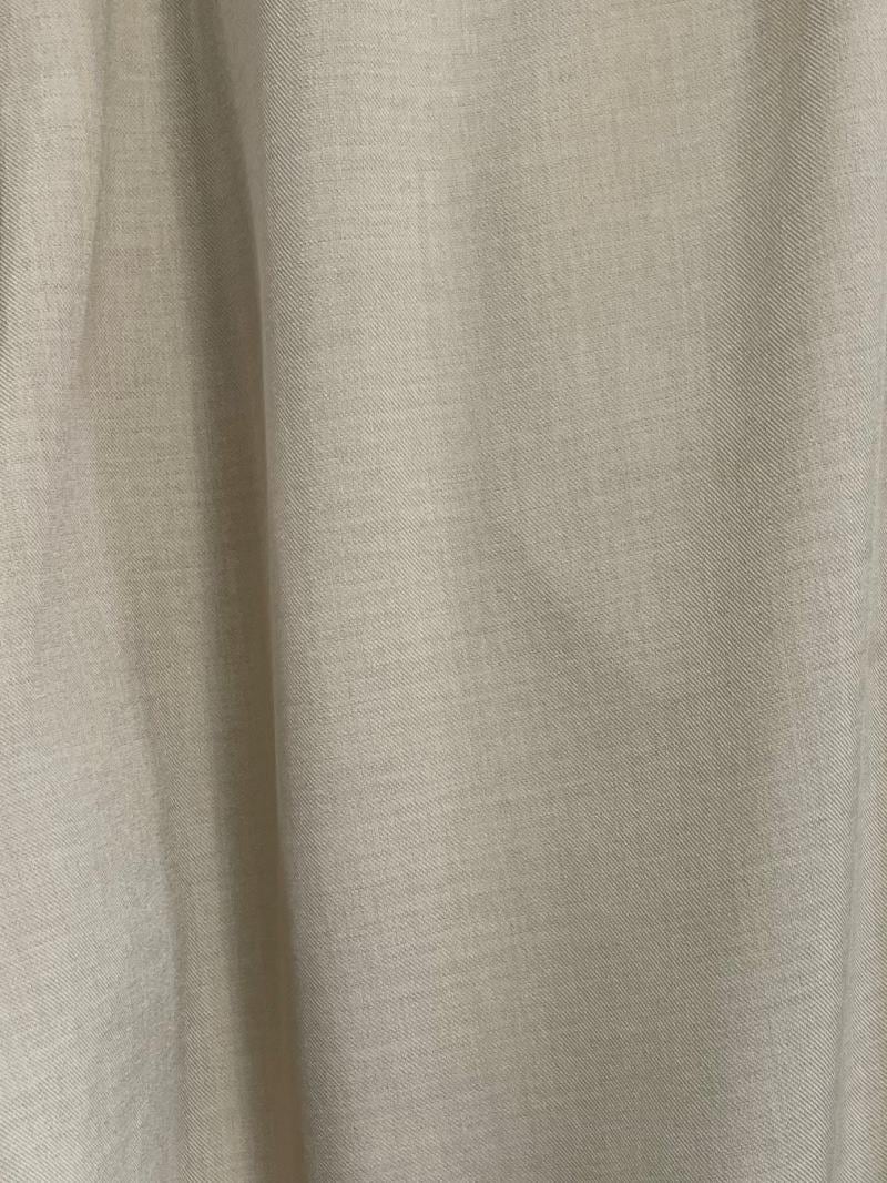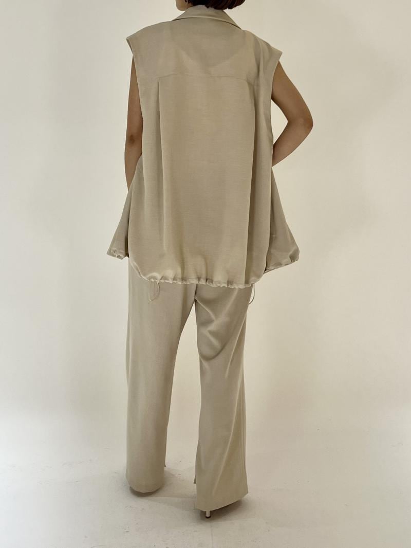 ウエストに2本のタックをいれ、たっぷりととったラインは体のラインを拾いづらく、