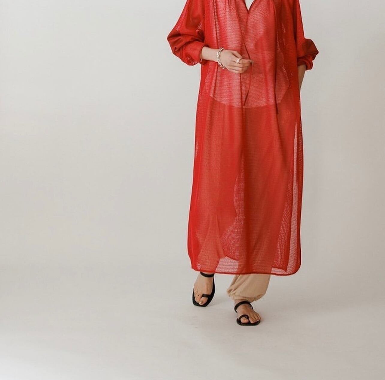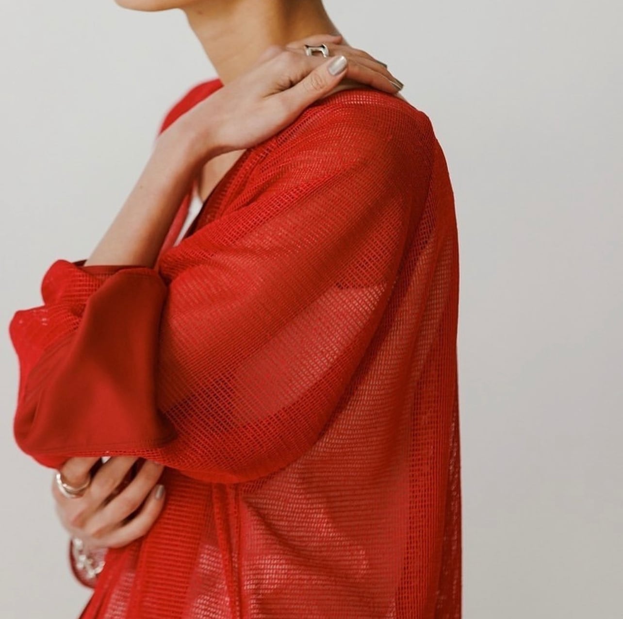 表面感のあるメッシュ素材を使用したシアーOPです。