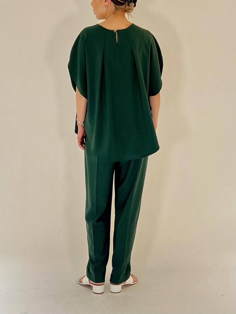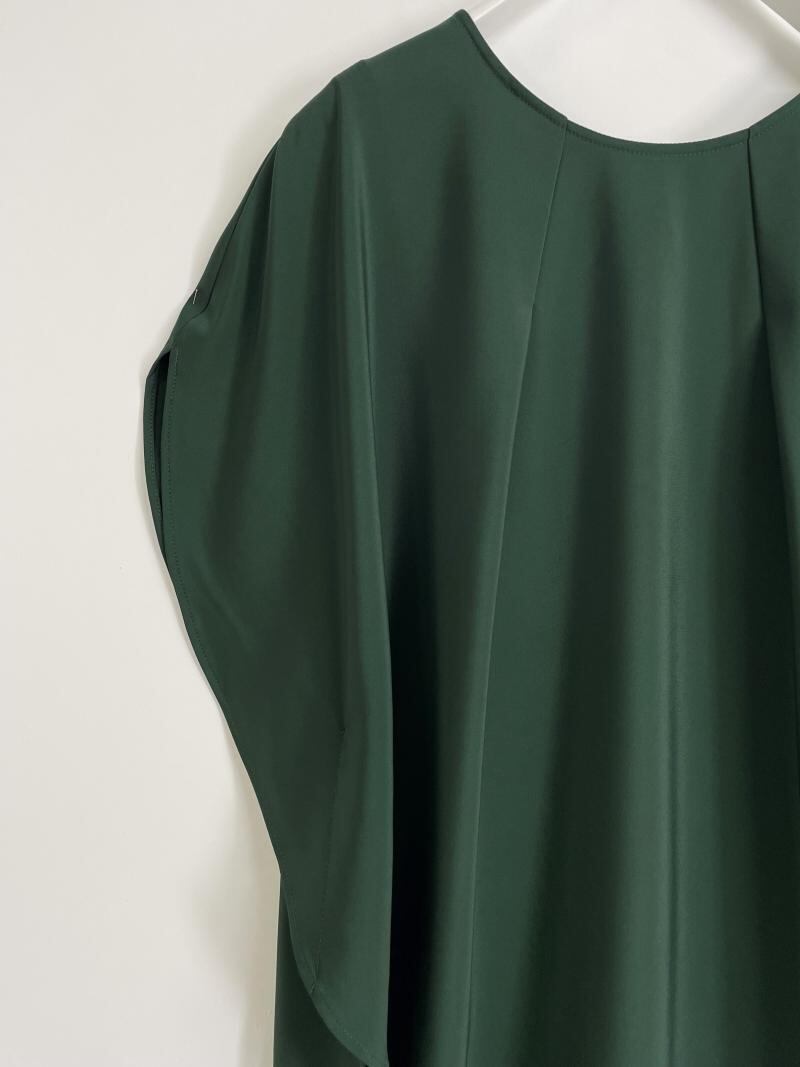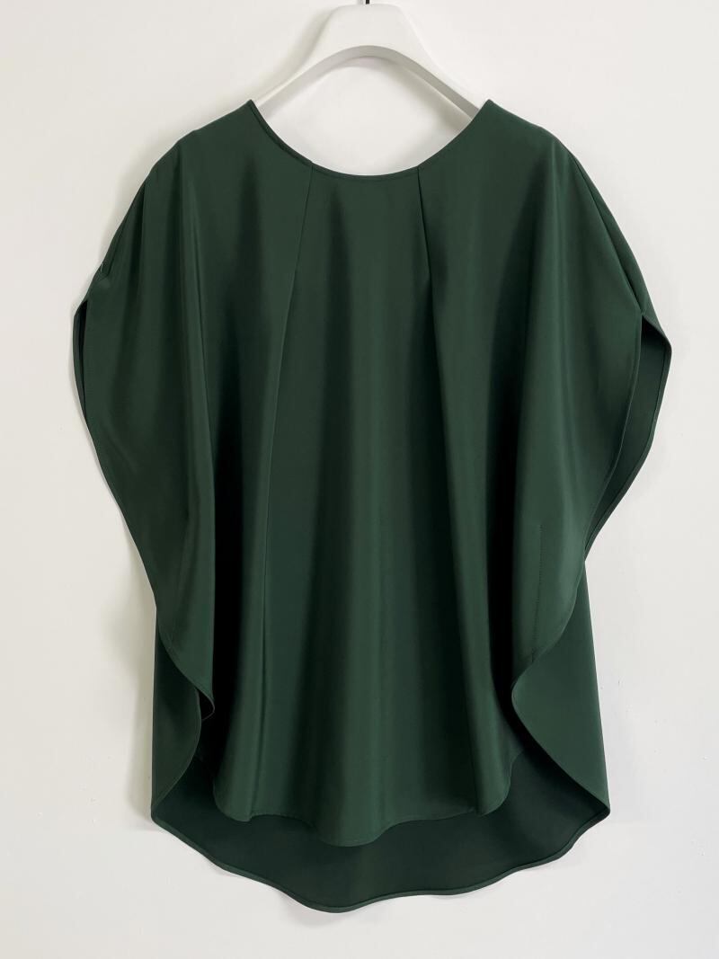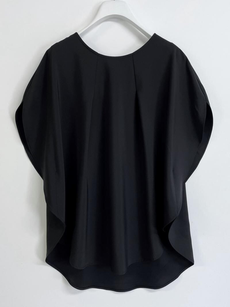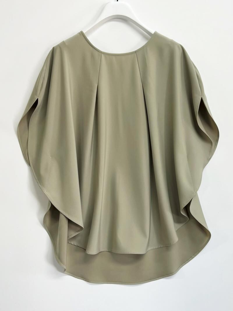 少し落ち感のあるきれいめな合繊素材を使用した、ポンチョブラウスです。