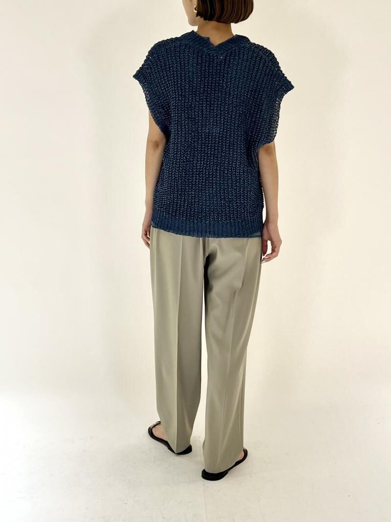程よくテーパードがきいたシルエットですが、ぐるりゴム仕様で楽に履いて頂けます。