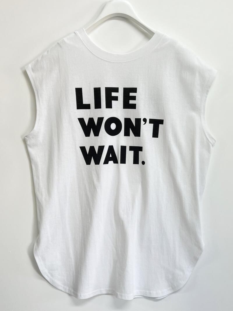 コロンとしたロゴがポイントのフレンチスリーブTeeです。