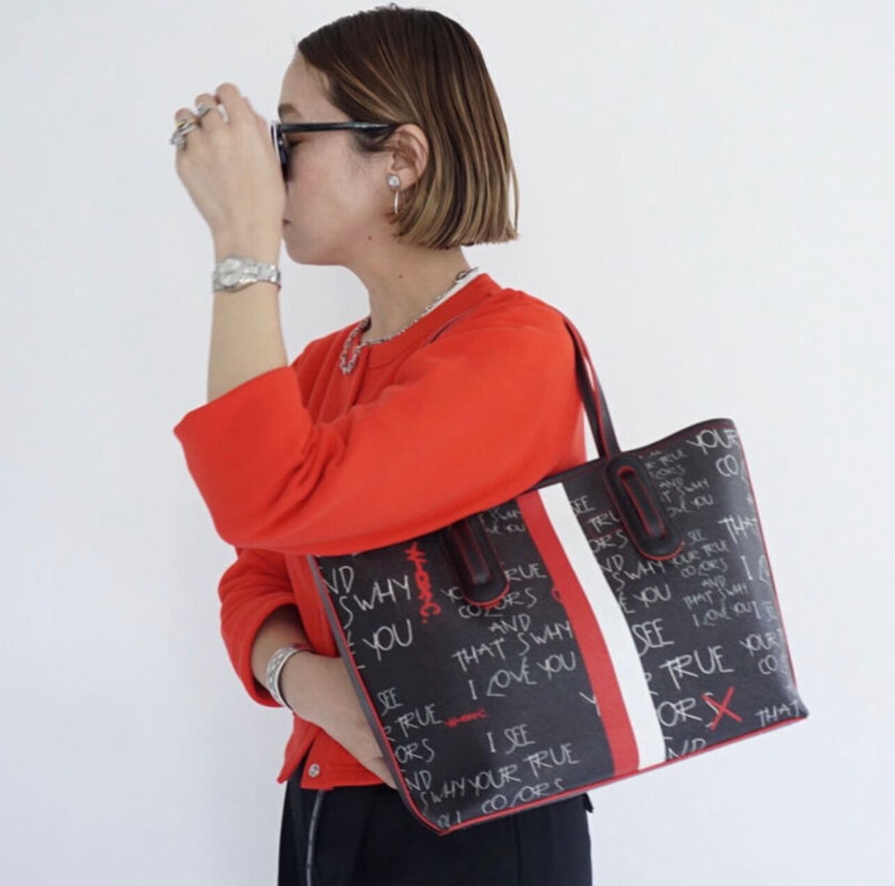 これまではPVC樹脂コーティングは’THE CIBE’でハードなバッグの形を選んできました。それもとても好きで、大変人気をいただいておりましたが、今回は新作として、気分を変えてカジュアルなバッグにしています。持ちやすく、かさばらず、肩にかけられる長めのハンドル。