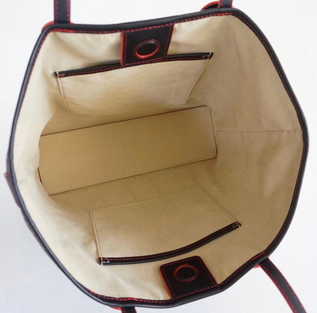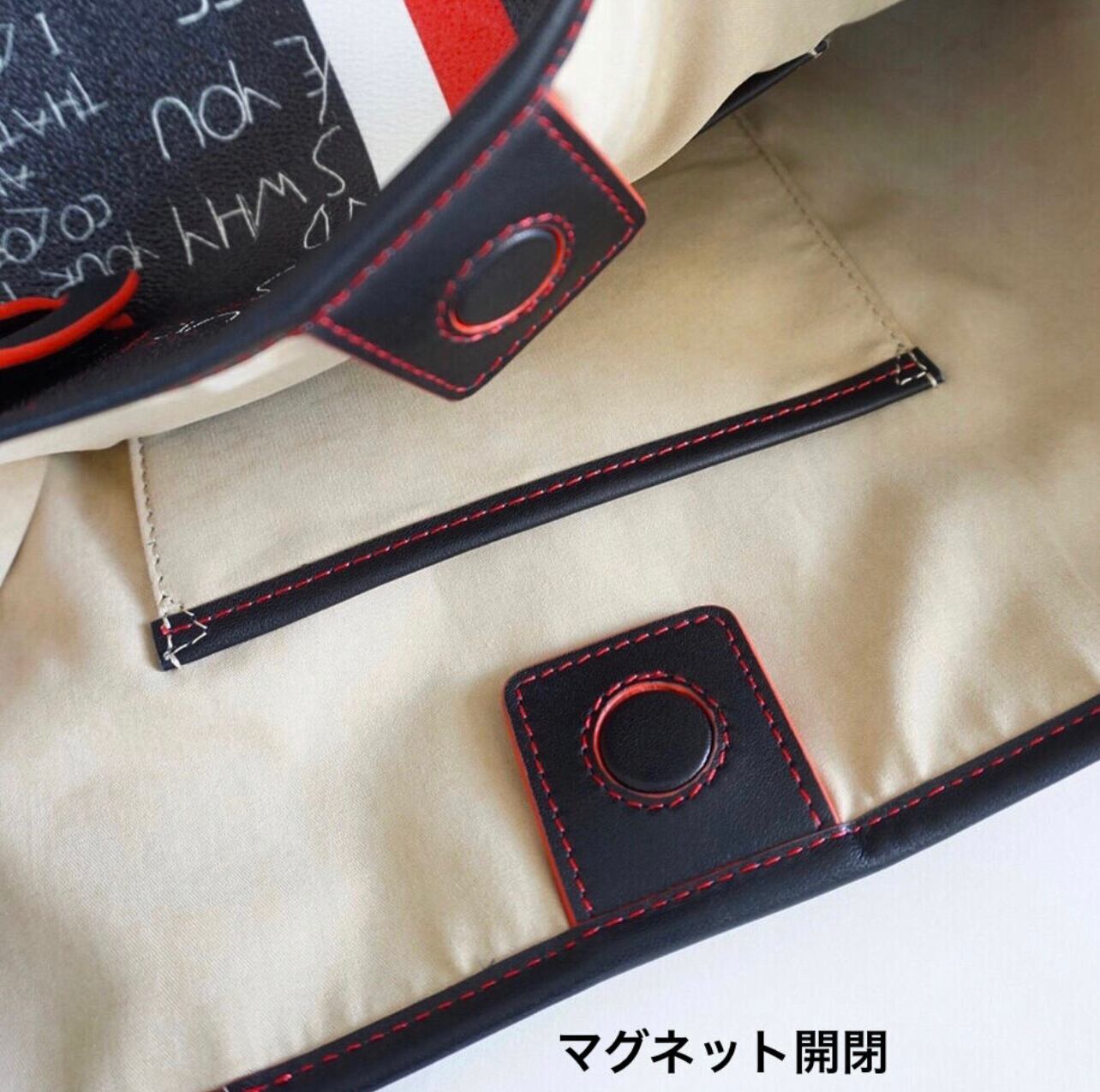 ブラックは汚れを気にせず安心して使えます。ミルククリームと比べるとブラックは少しハードかもしれませんが、赤と黒のコンビネーションが気に入っています。ミルククリームもPVC素材なので汚れにくく、また汚れの目立たない柄になっています。どちらのカラーもとてもお勧めです。多少煩雑に扱ってしまっても長く使ってもらえるバッグだと思います。