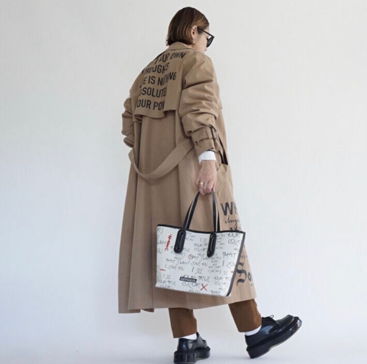 これまではPVC樹脂コーティングは’THE CIBE’でハードなバッグの形を選んできました。それもとても好きで、大変人気をいただいておりましたが、今回は新作として、気分を変えてカジュアルなバッグにしています。持ちやすく、かさばらず、肩にかけられる長めのハンドル。