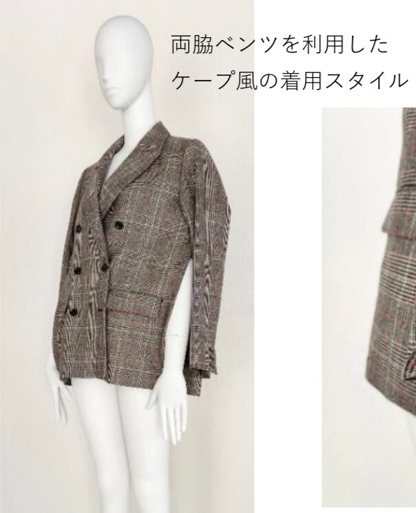 【DESIGN】 ボクシーで抜け感のあるシルエットのピークドラペルのダブルブレストジャケット。両サイド