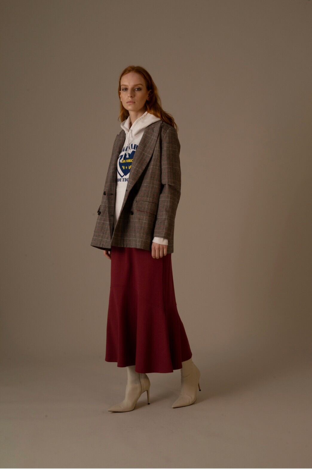 無地は梳毛調TRストレッチツイルを使用。オーソドックスな素材感はオン・オフ両用可能で コーデの幅が広がります。 チェック柄はブルー、ボルドーのウィンドーペンがアクセントのメンズライクなグレンチェッ クをセレクトし、様々なアイテムとコーディネートしやすくなっています。総裏仕様で滑り良 い着用感です。