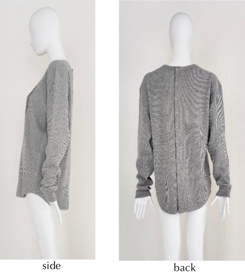 10.3のしっかりとした肉厚のサーマル素材を使用。綿100%の優しい肌触りとイージケアが特 徴です。背中の明き部分の短冊にはナチュラルな風合いのソフトフライスを使用。こちらも綿 100%で着心地の良さにこだわりました。