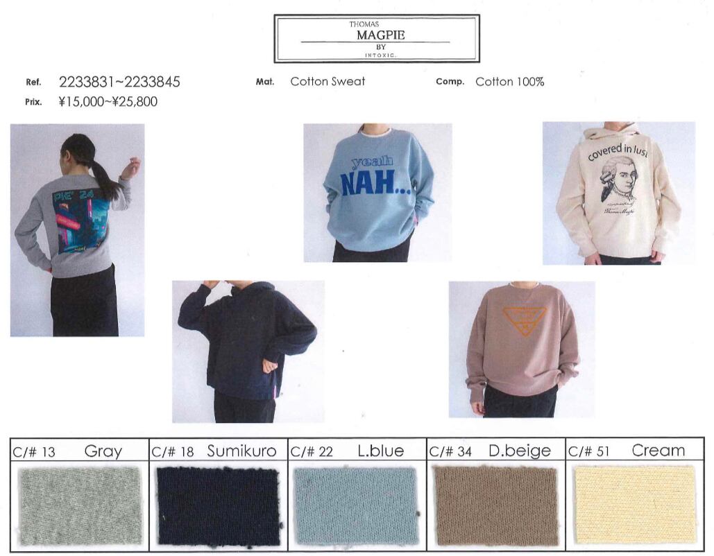 thomasmagpieは当店で、予約販売含め人気のブランドです。インパクトのあるクセ強めアイテムも多めですが、なぜかコーディネートしやすく、拘りの素材選びとディテールで大人のおしゃれを楽しめます!