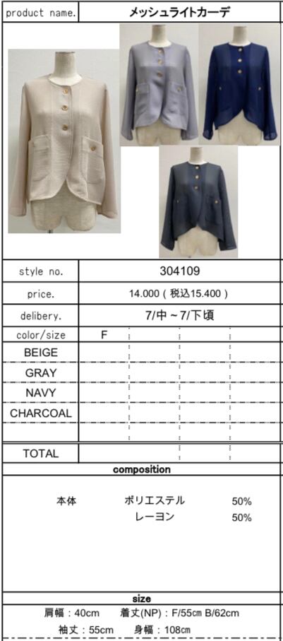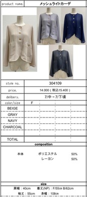 予約販売【 CYAN TOKYO 】メッシュライトカーデ ( 304109 ) 7月下旬お届け