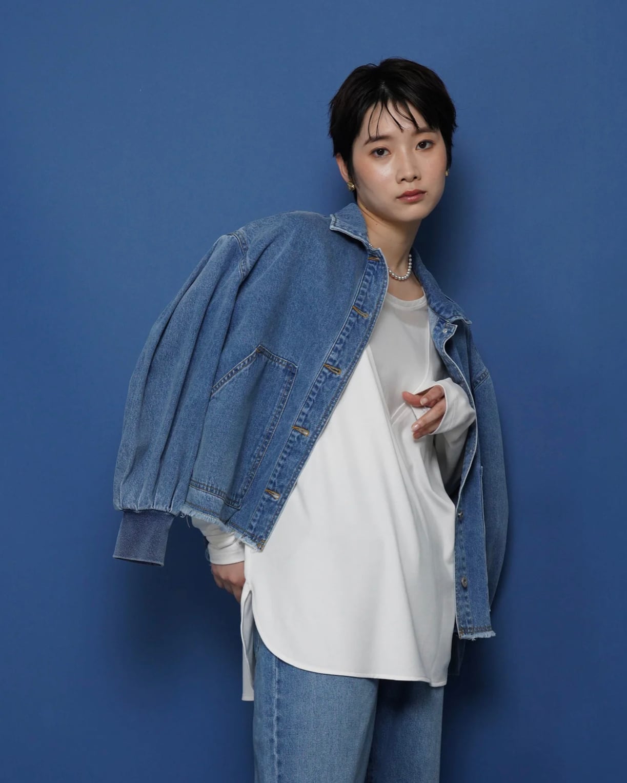 同じ素材でシャツスリーブオーバーブラウスもございます。
