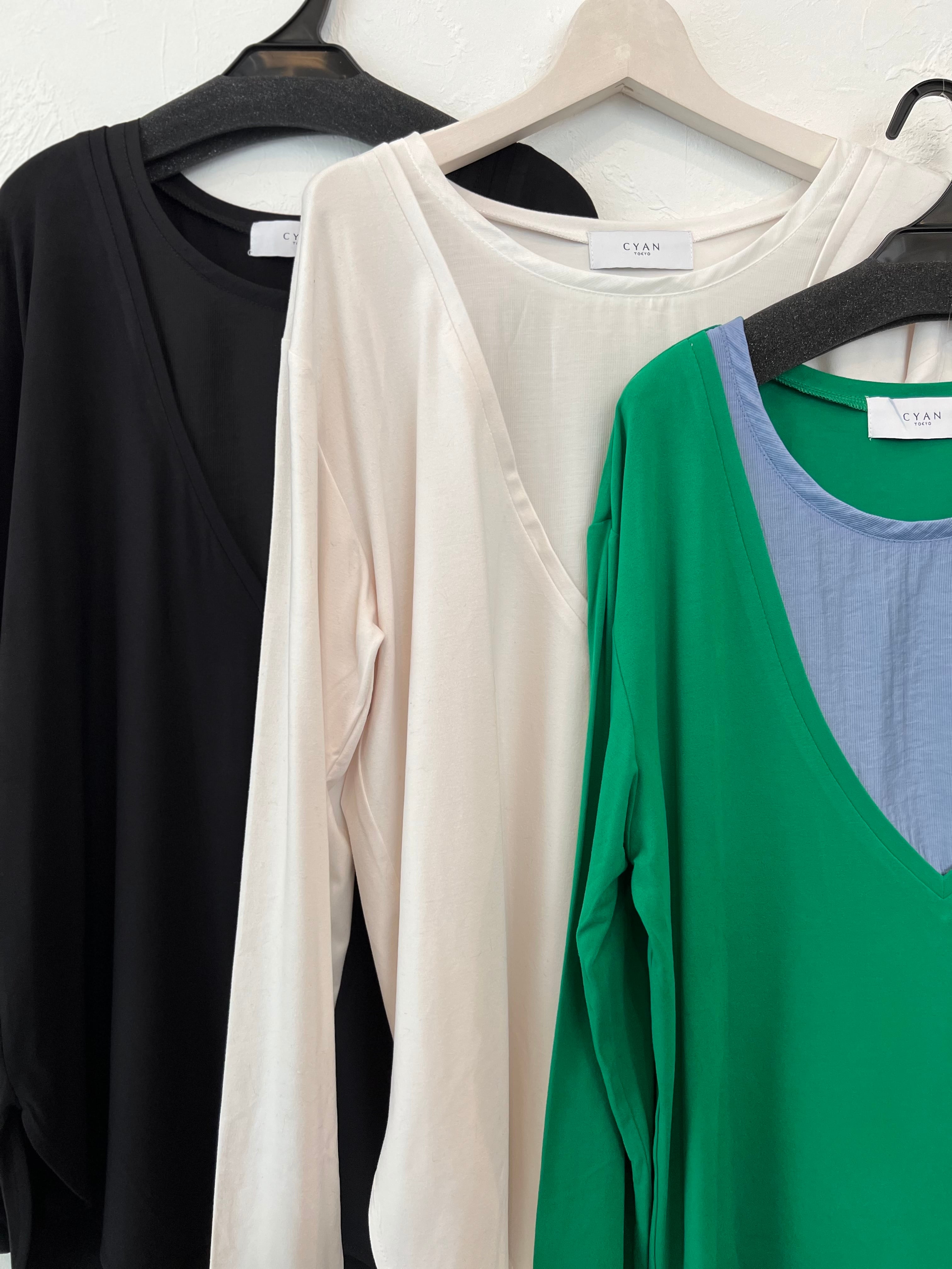 【 CYAN TOKYO 】layer neck cut blouse ( 304124 )
