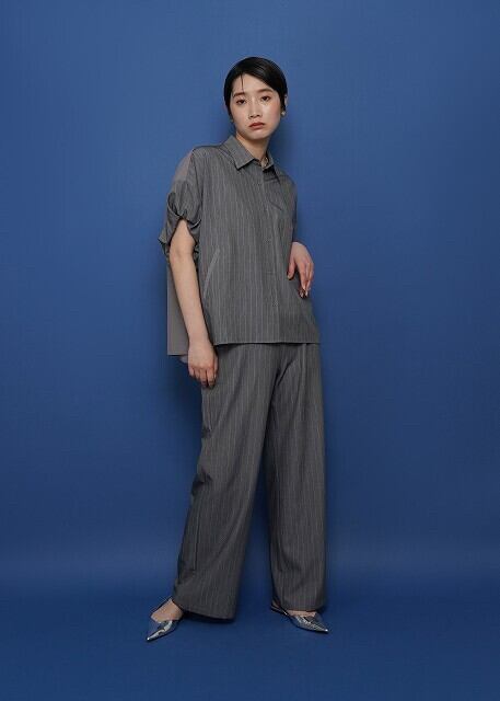 予約販売【 CYAN TOKYO 】ウエストギャザーストライプワイド ( 304113 ) 7月お届け