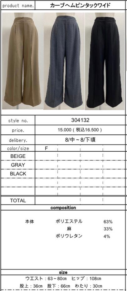 予約販売【 CYAN TOKYO 】カーブへムピンタックワイド(304132) 8月お届け