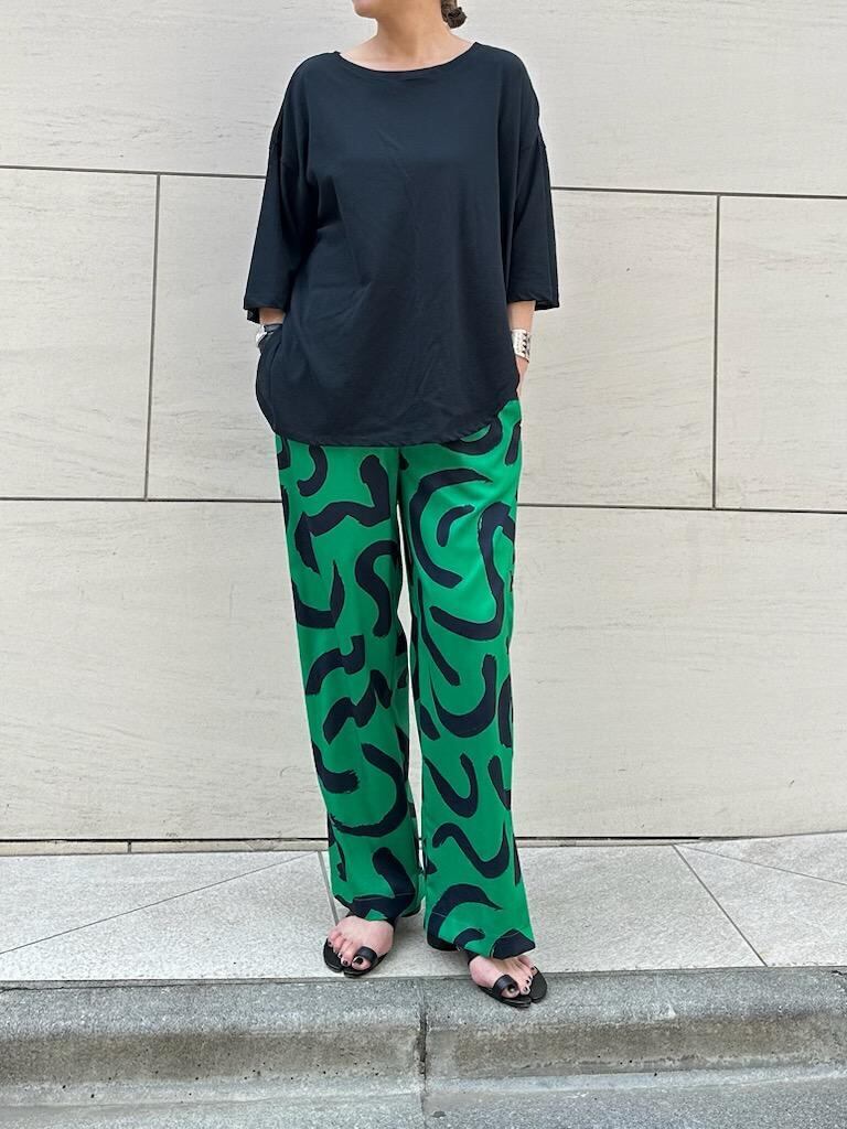 単色の取り入れやすい柄と配色でスタイリングのポイントになるグラフィックです。