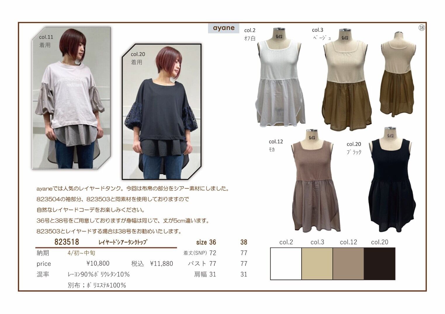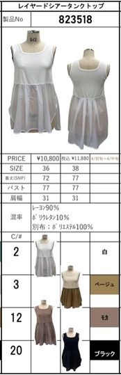 【 ayane 】 レイヤードシアータンクトップ(823518)