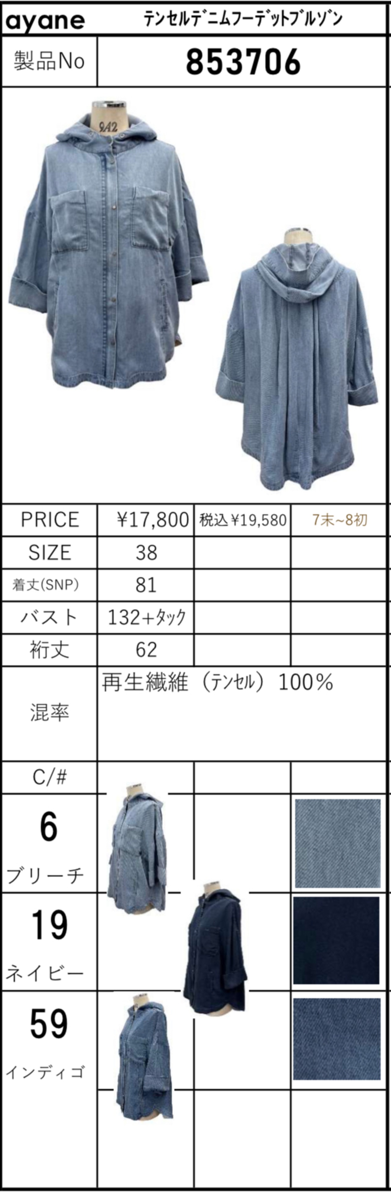 ☆予約販売【 ayane 】テンセルデニムフーデットブルゾン(853706)8月お届け