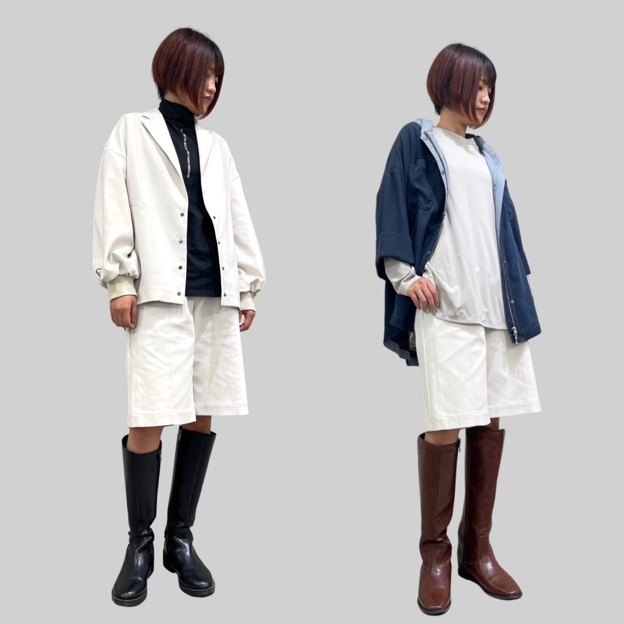 セットアップ出来るテーラードコクーンジャケットがございます。