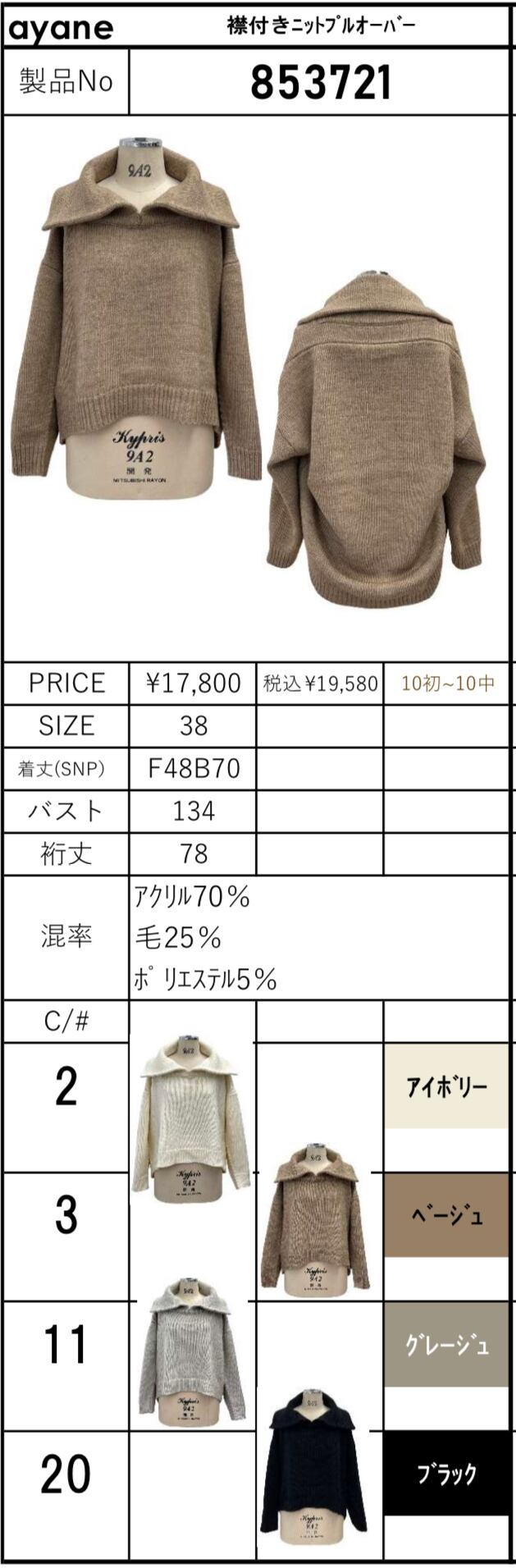 【 ayane 】襟付きニットプルオーバー(853721)