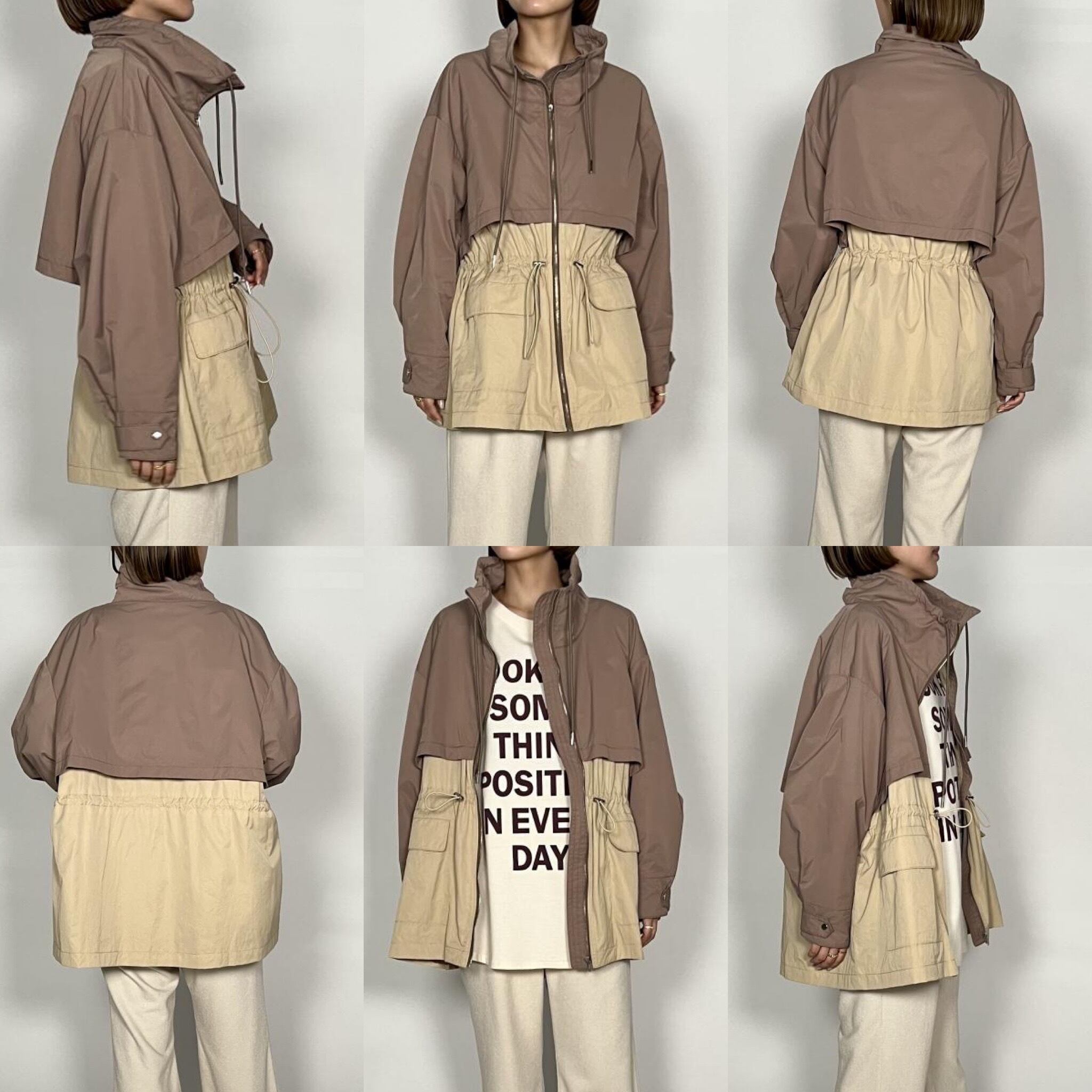ジップアップや要所にメタルディテールを施すことでスポーティーに仕上げつつ、衿元やウエスト部分を絞ることで女性らしくご着用いただけます。