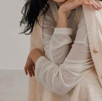 温かみがあり、程よい透け感と落ち感のある薄手フライス素材。