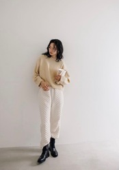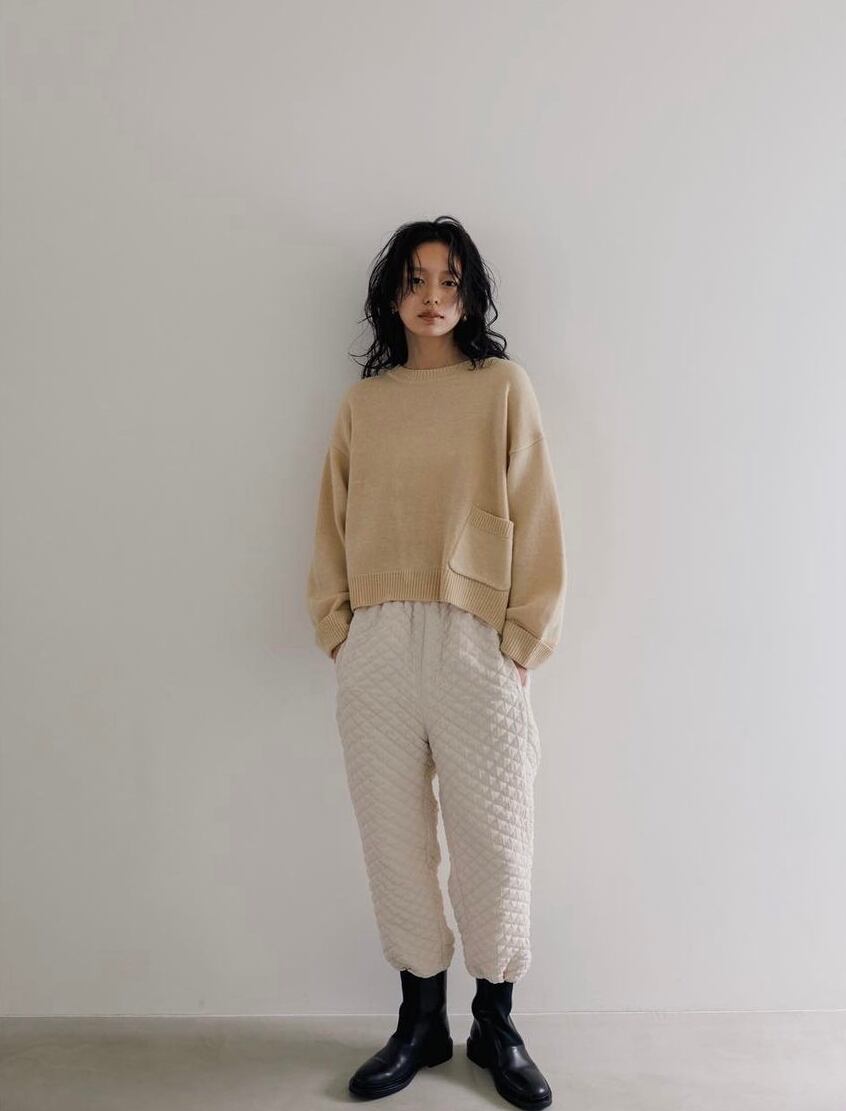 ウール混のカサッとした風合いが特徴の糸を使用し、たっぷりオーバーサイズのチャンキーニットになります。