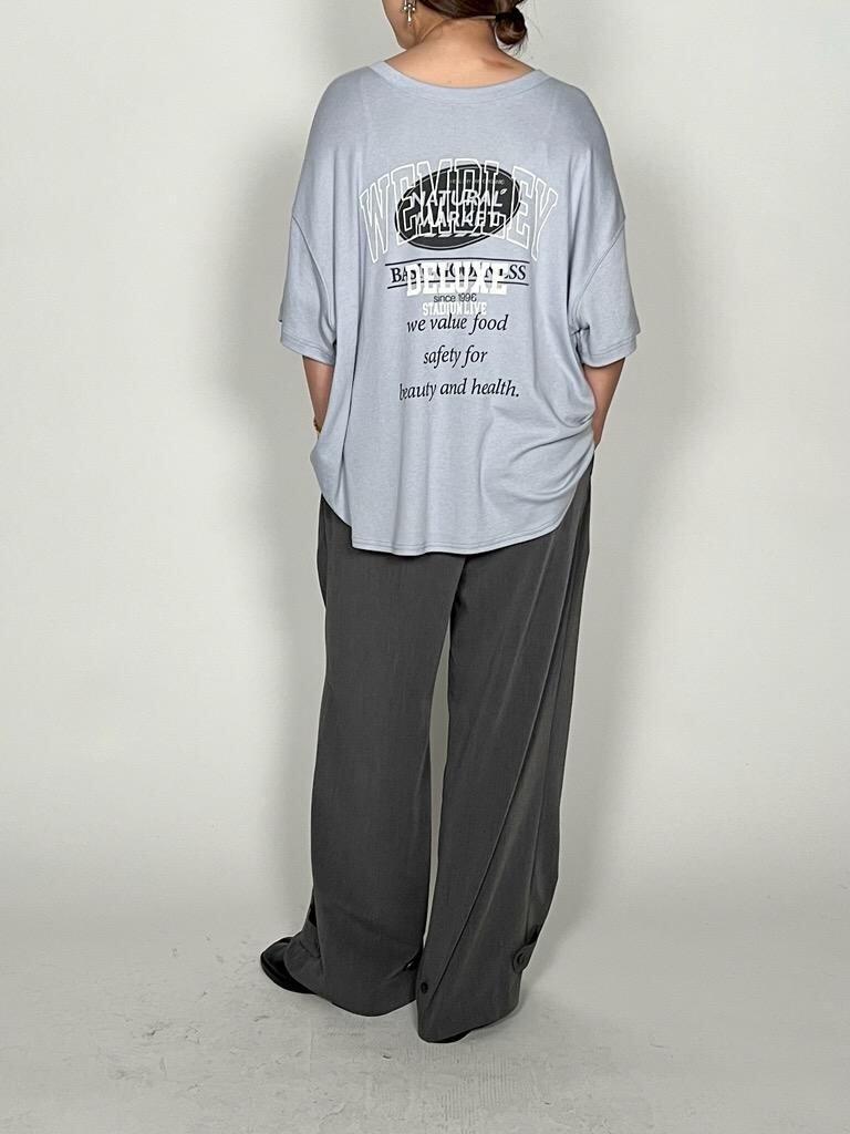 オリジナルのロゴプリントを施したTシャツです。ソフトな肌触りと適度な落ち感のあるジャージーをセレクト。襟元やサイズ感など、程よくルーズなシルエットを設計し女性らしさを演出しました。