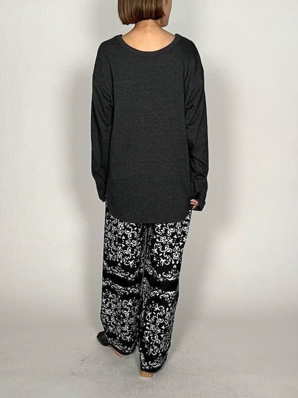 ソフトな風合いのコットンジャージーをセレクト。さらりとした肌触りが特徴です。オーバーサイズに設計し、リラックスな着心地を重視し作成しました。オリジナルプリントを施すことでデザイン性のあるインパクトのある1枚に。前後着用できる仕様・サイズ感に設計し、着回し力の高いアイテムに仕上げました。