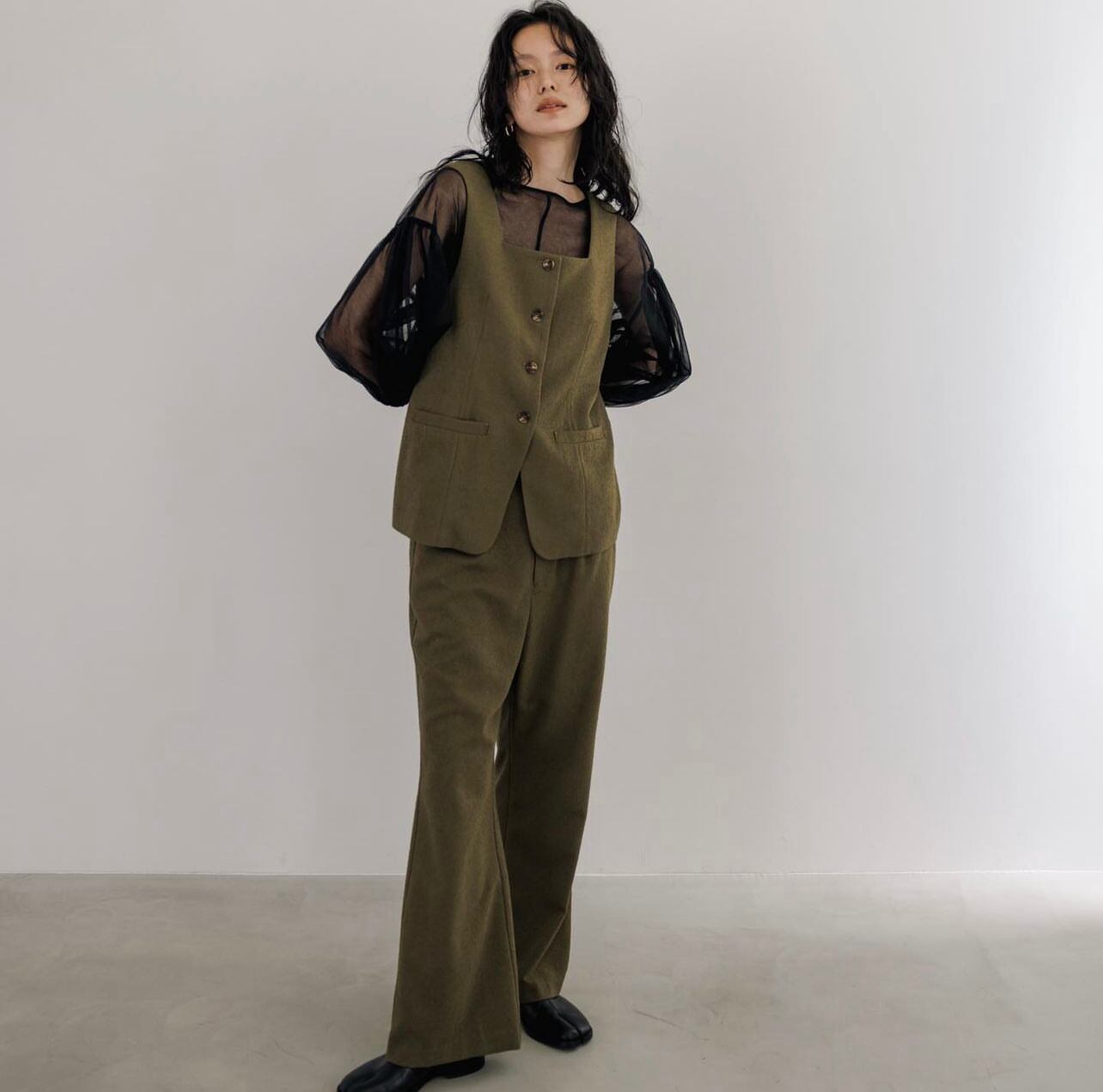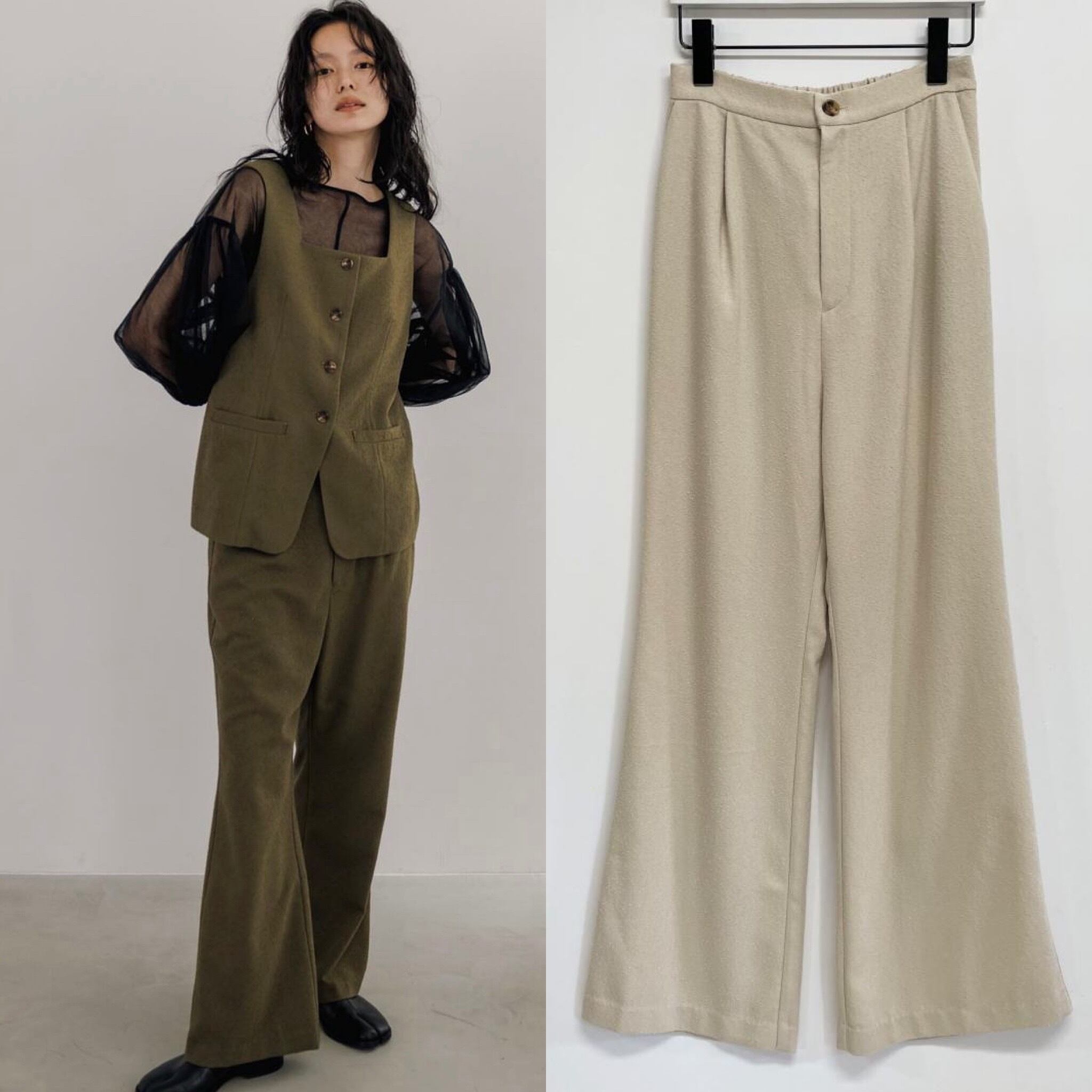 同色ネップの表面感がある素材を使用した、ワンタックフレアPTです。