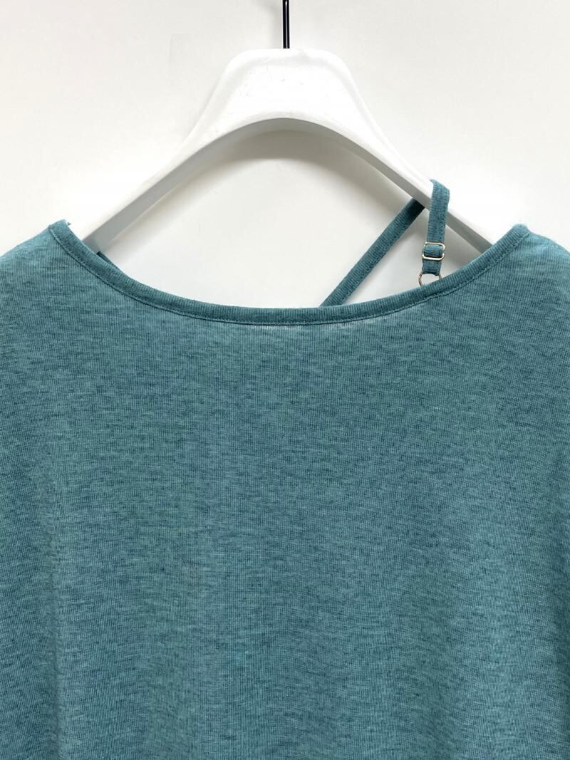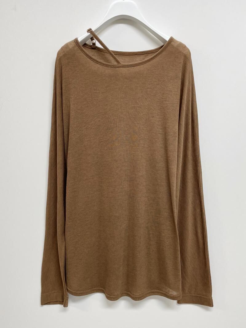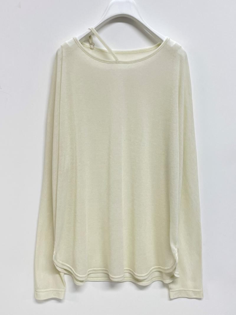 ドルマンのシルエットに襟元に女性らしいアシンメトリーのストラップを付け、レイヤードにも対応できるデザインに仕上げました。