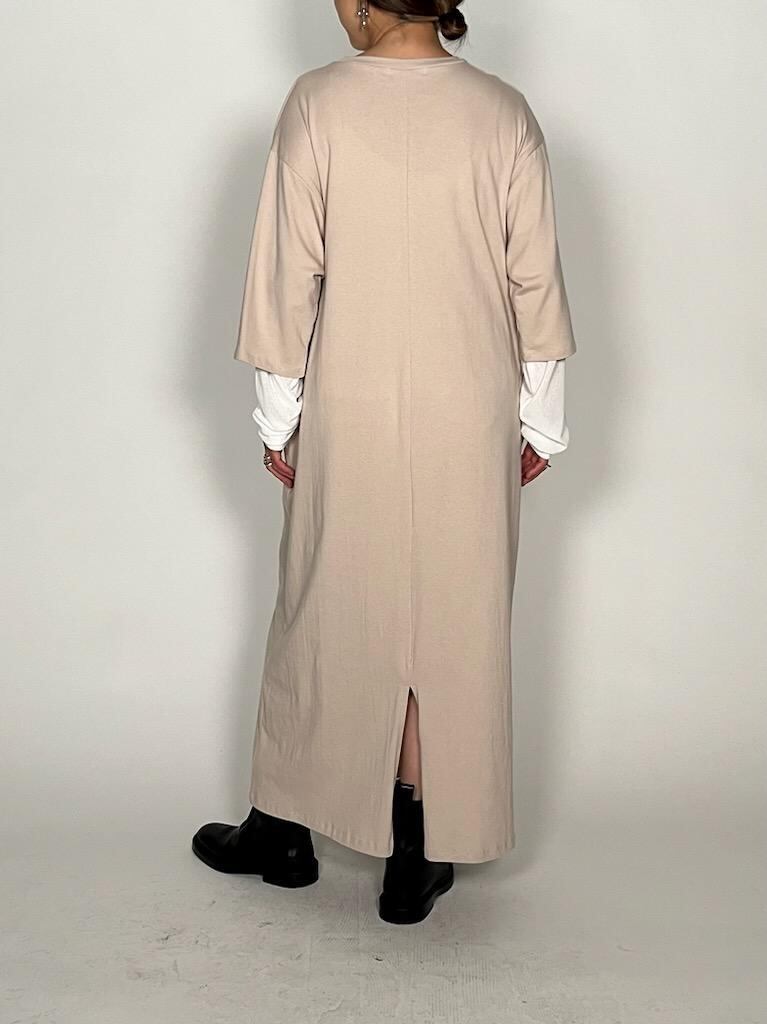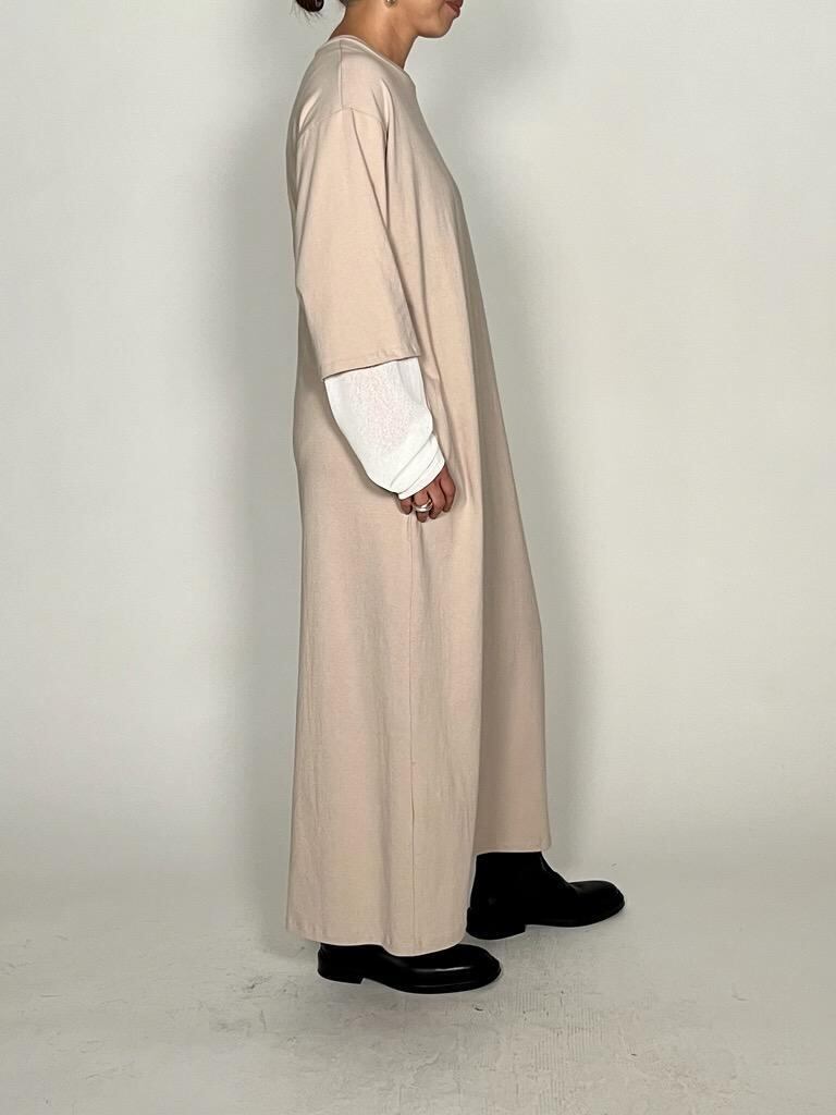 しっかりとしたコットンジャージーと、シアー感あるジャージー素材を切り替えることでコントラスト高め、1枚で様になるアイテムに仕上げました。ワイドな身巾でリラックスな着心地に設計し、長めの袖丈で抜け感と女性らしさを演出しました。落ち着いた配色使いでオトナカジュアルな1着に仕上げました。