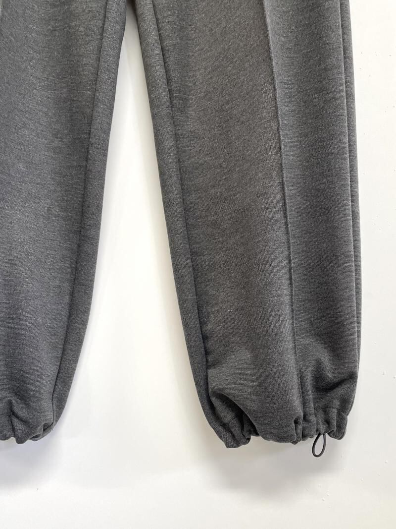 ジャージーならではのリラックスな着心地と、ウエストはぐるりゴム仕様でストレスフリーにご着用いただけます。センターにはピンタックを施し縦のラインを強調することでスタイルアップ効果も◎。裾はストレッチコードで絞ることが可能でシルエット変化も楽しめます。