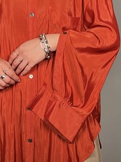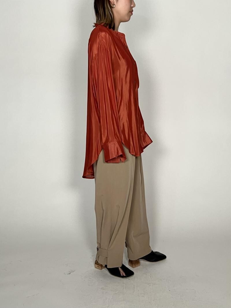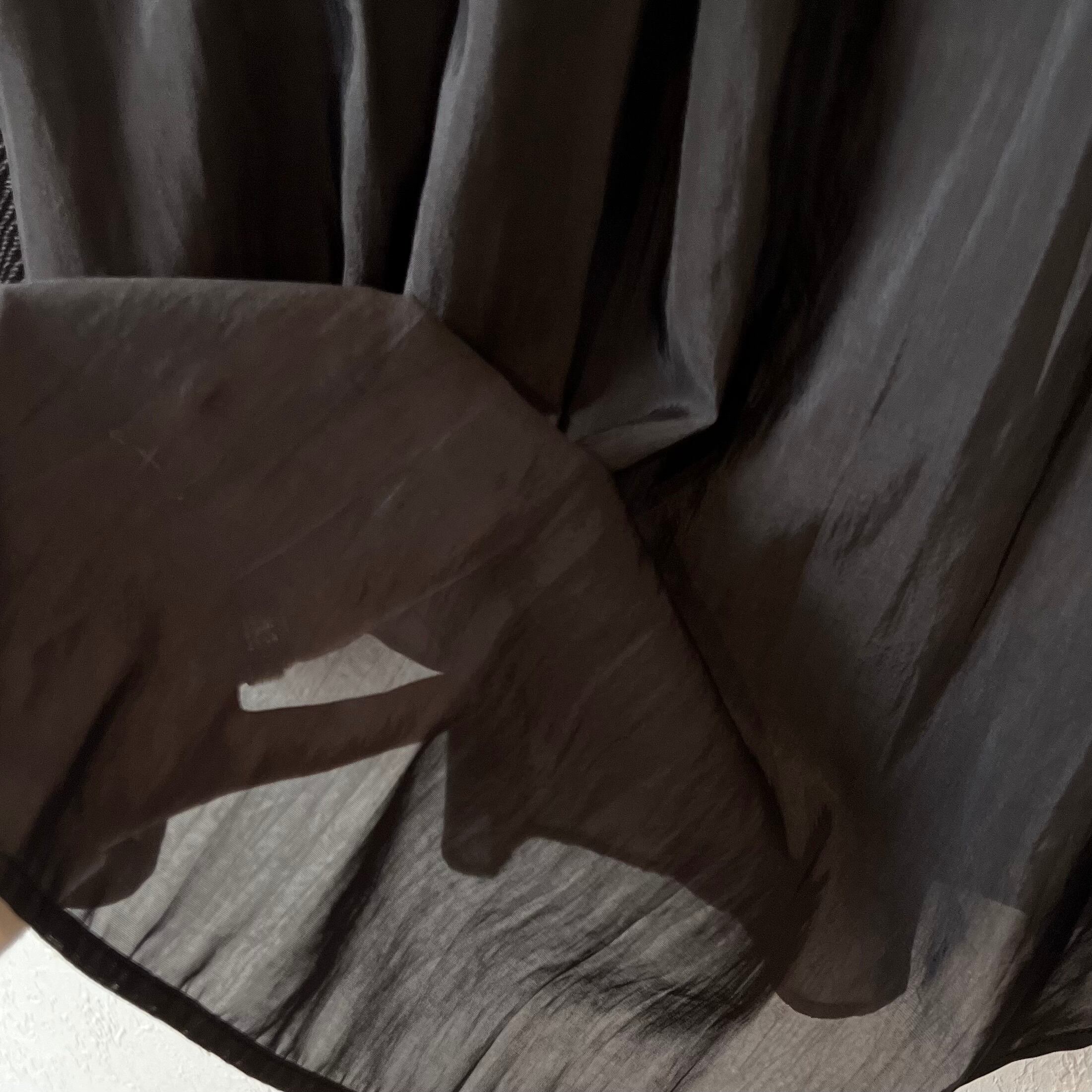 上品な光沢と透けすぎないシアーな素材感、ナチュラルな落ち感と風合いが特徴の生地を使用。
