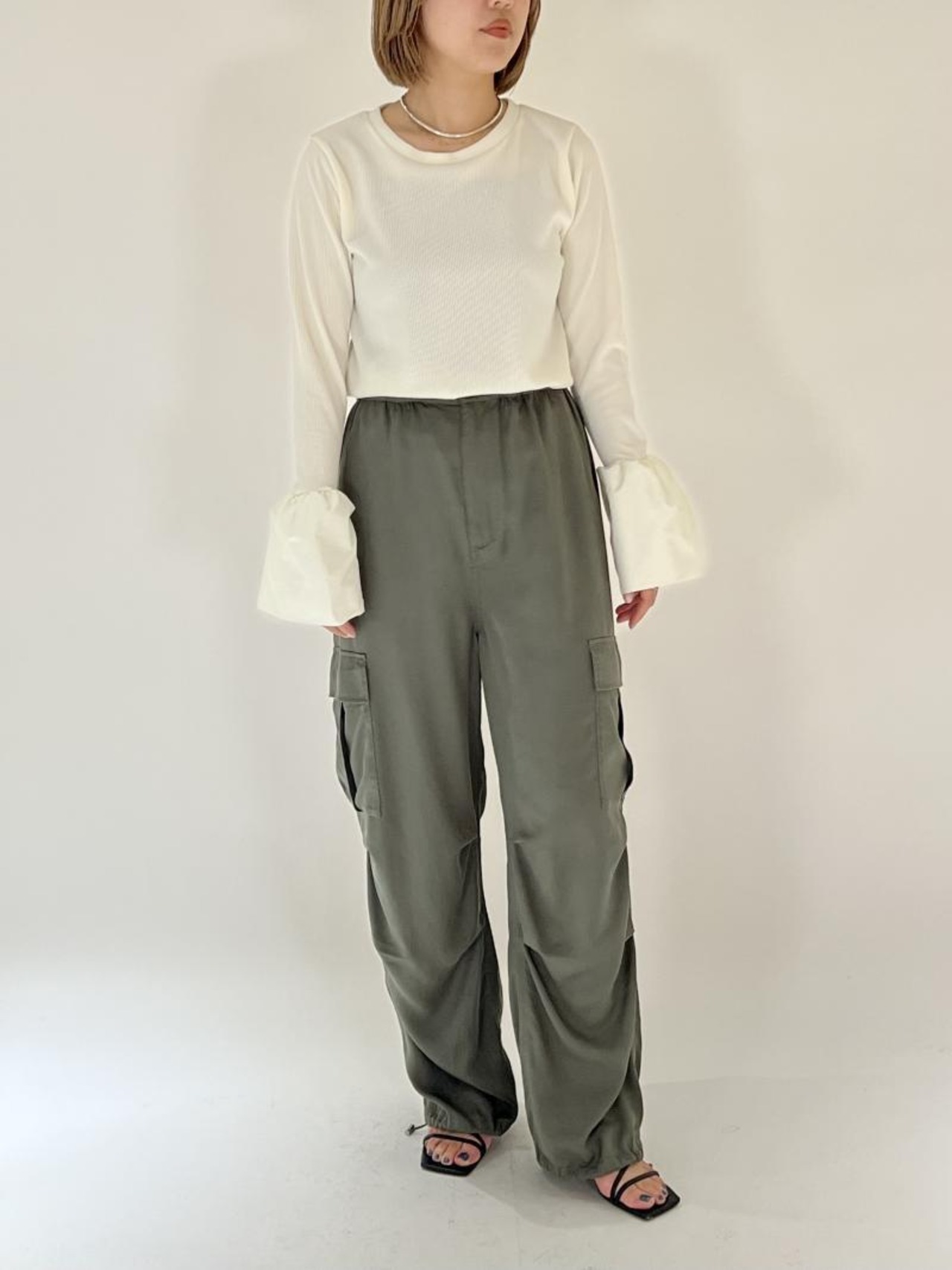 とろみ感のある女性らしい素材で作ったパラシュートPTです。