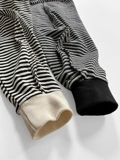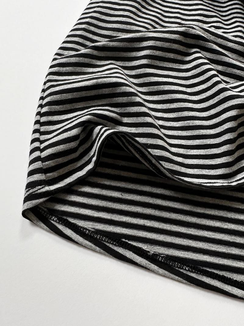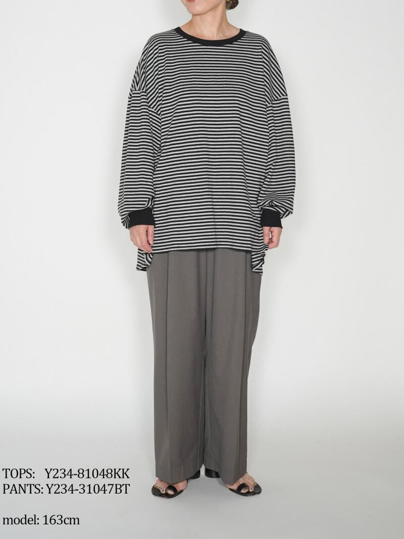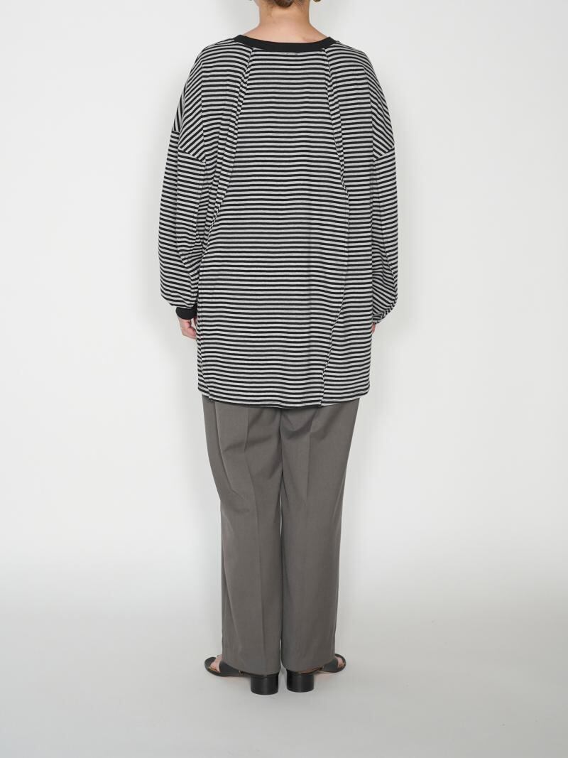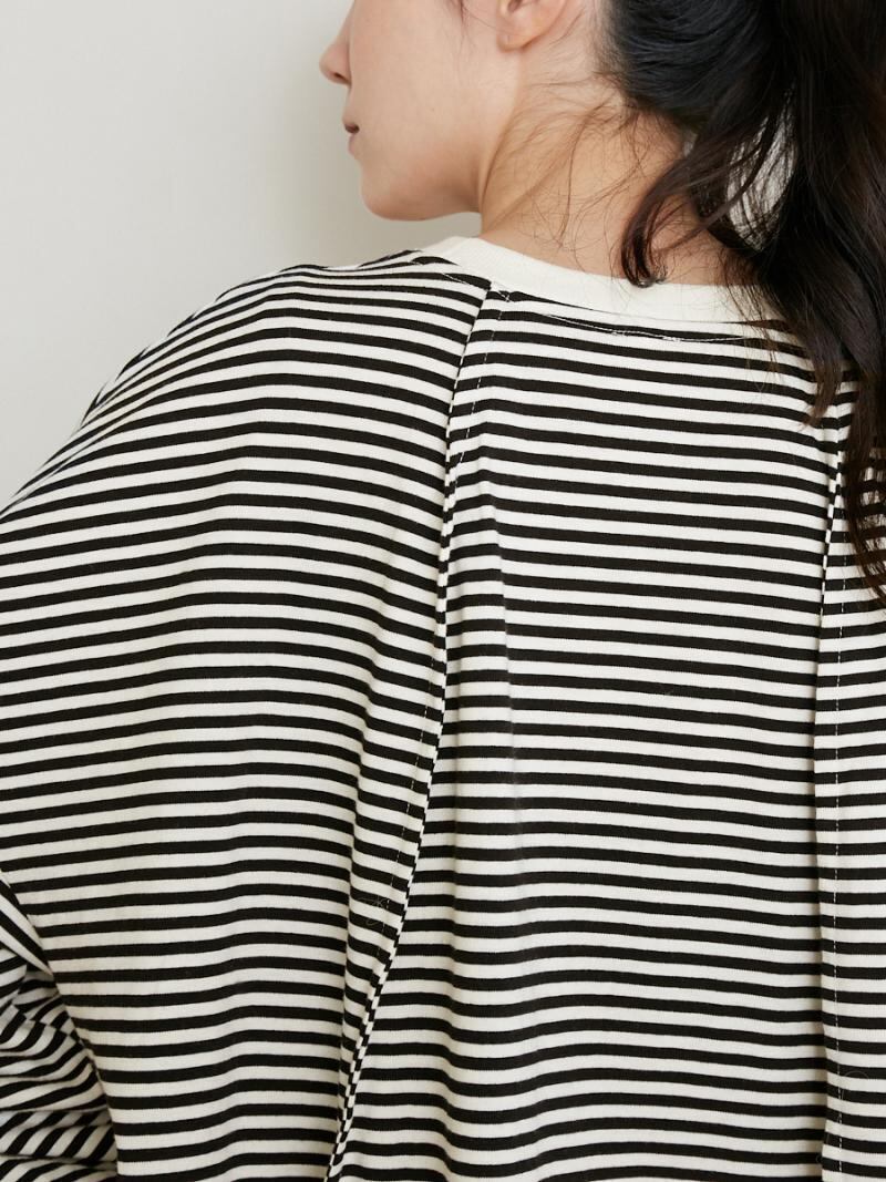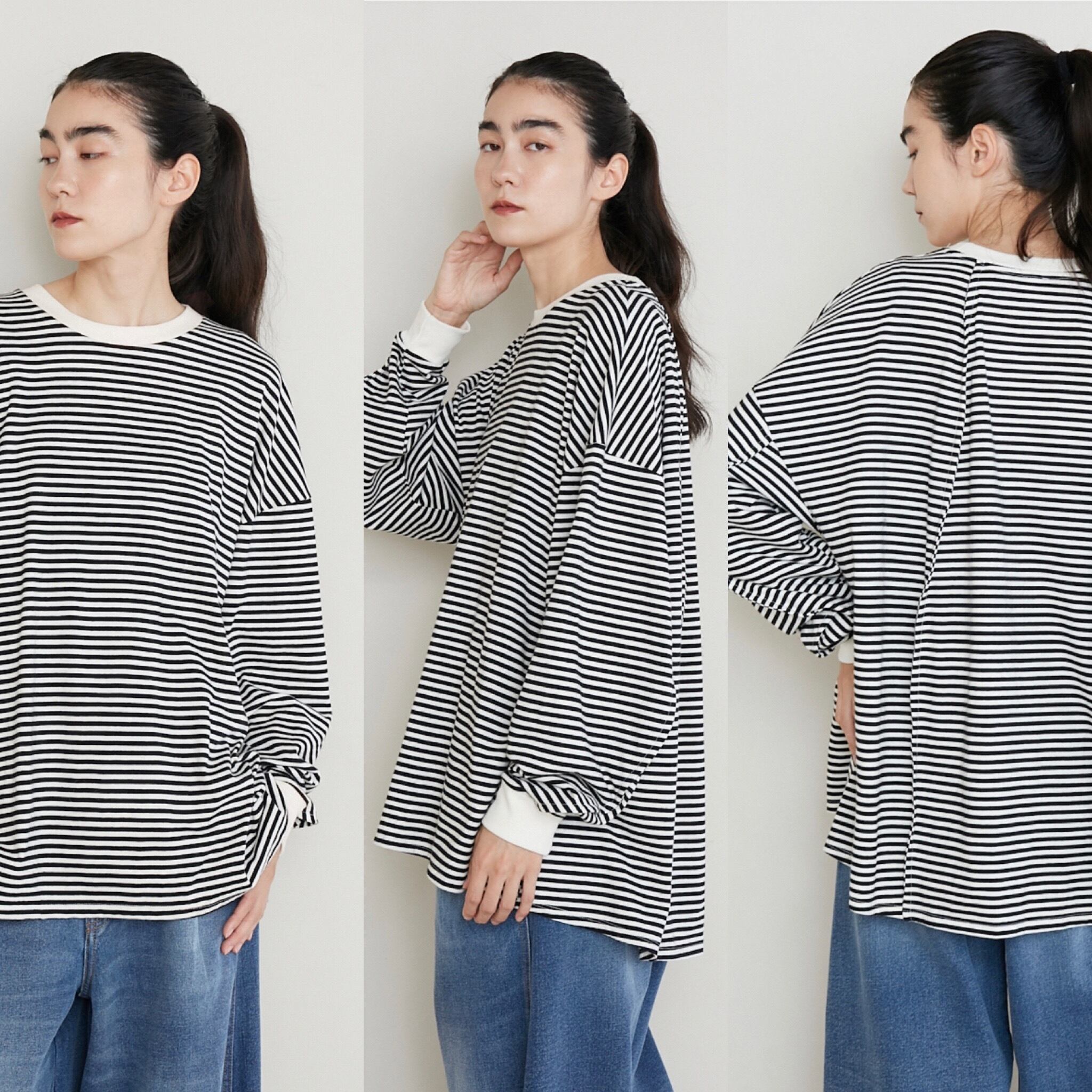 綿100%のボーダー生地を使用した長袖Tシャツです。