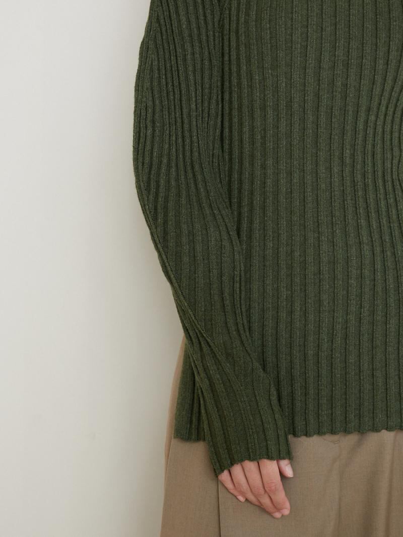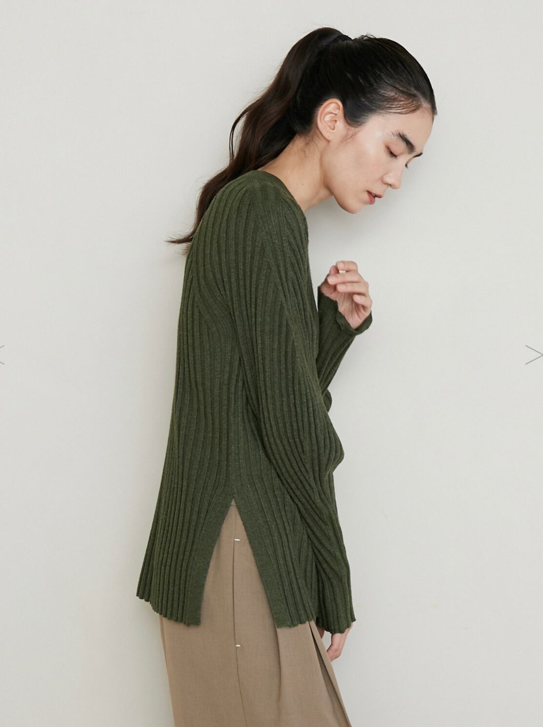 昨年人気のあったリブフォルムニットプルオーバーをネックを変えてアップデートしました。