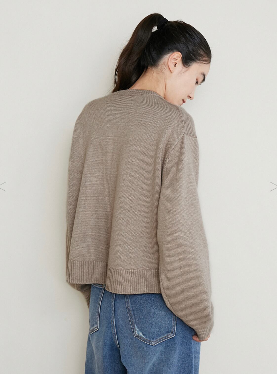 しっかりとした肉感のあるアンゴラ混の糸で編み立てたニットプルオーバーです。
