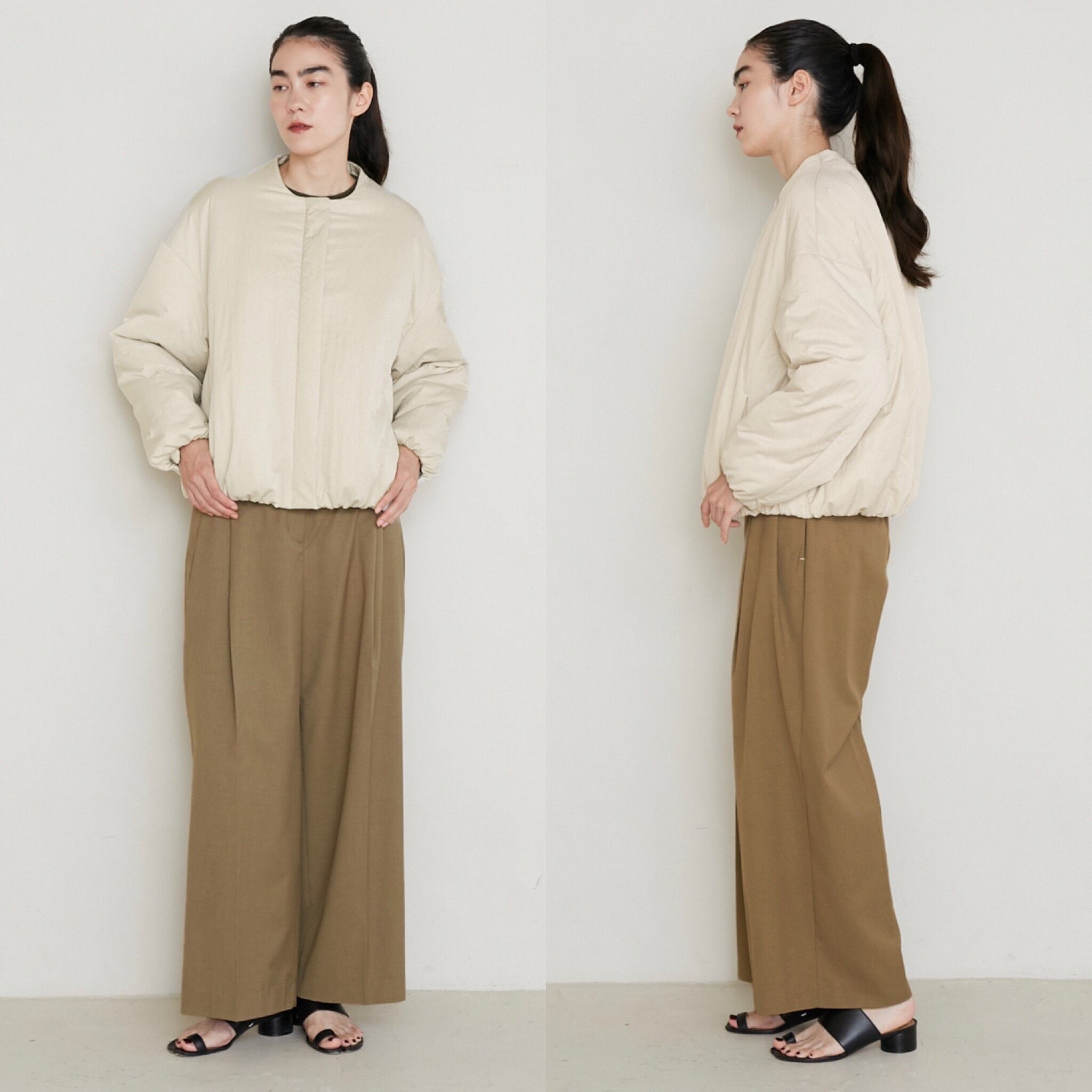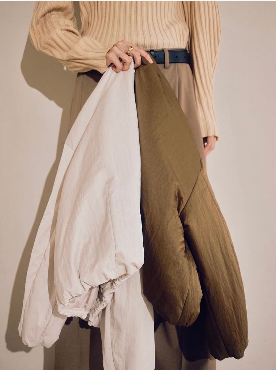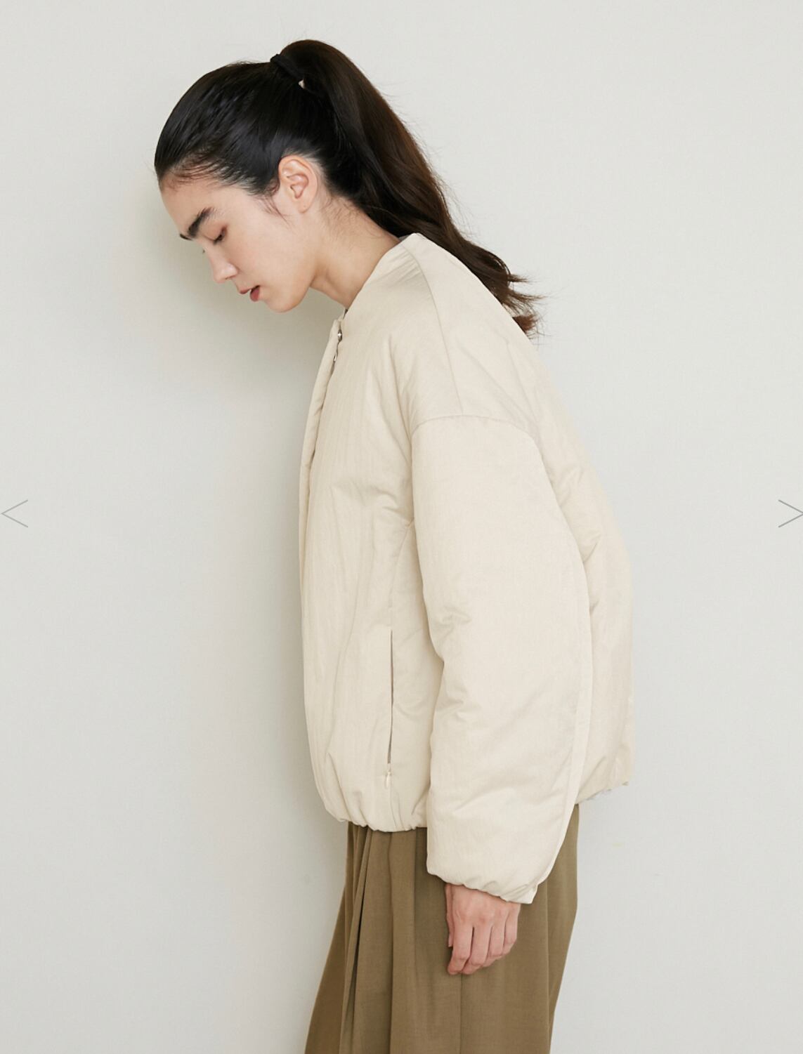 ふんわりボリュームがありとても軽いジャケットはミニマルなかっこよさと女性らしさもありスタイリングの幅も広がるアイテムです。