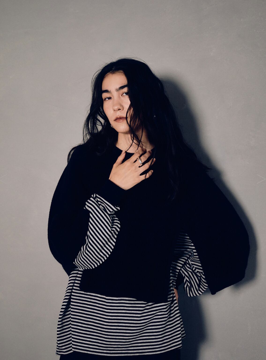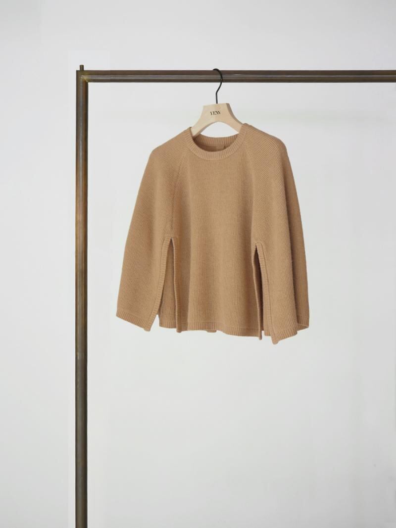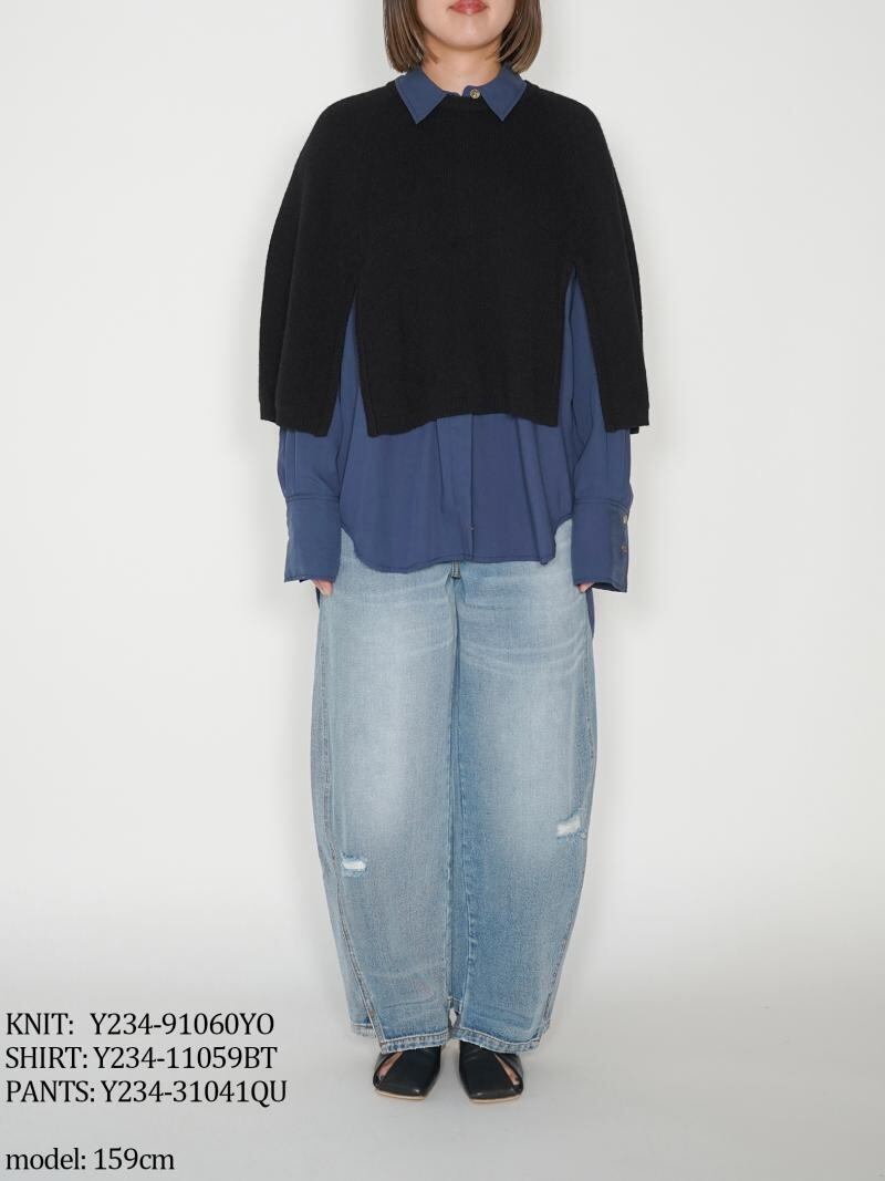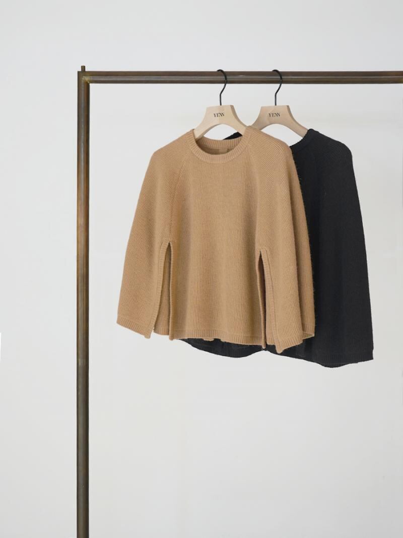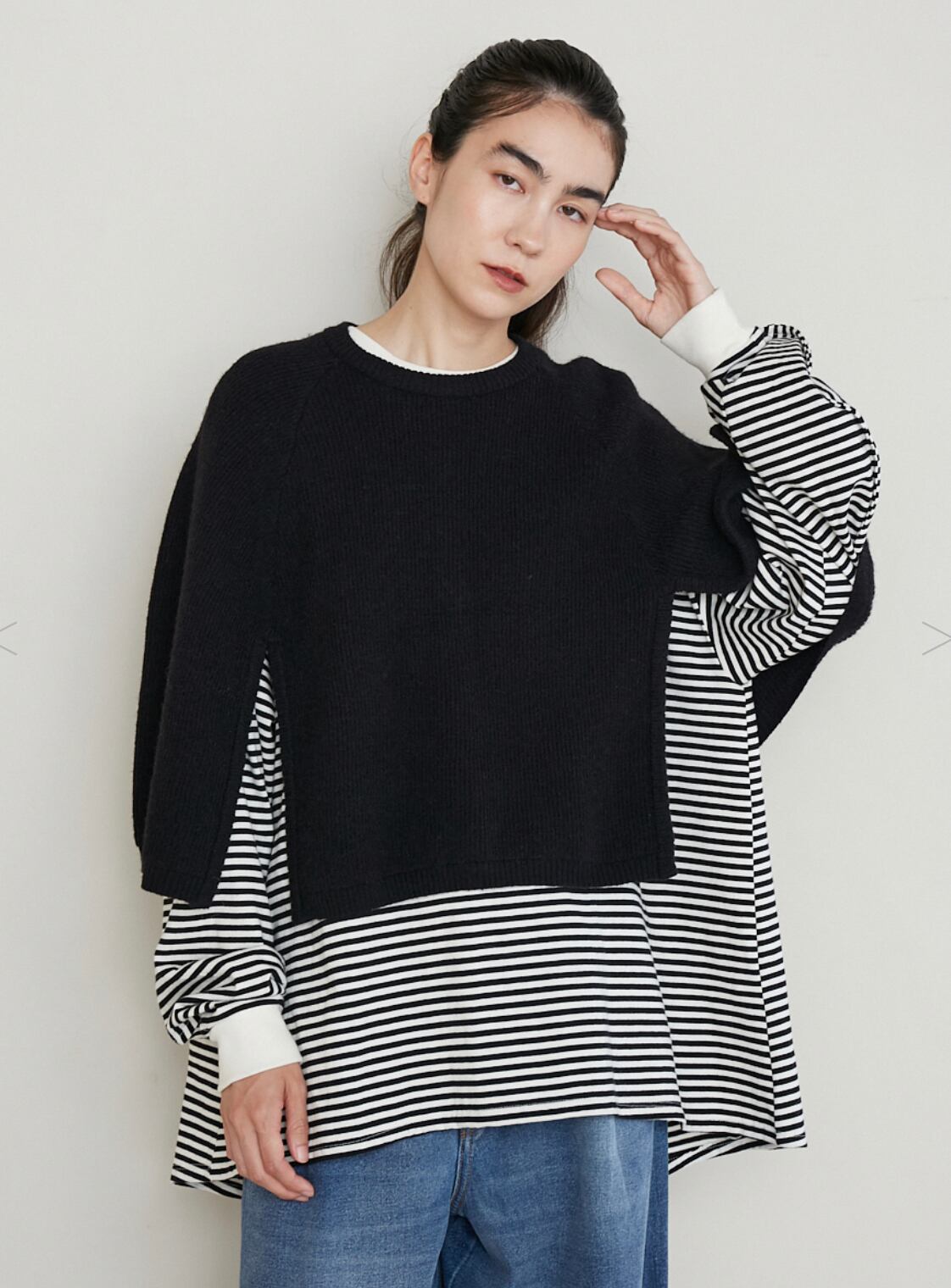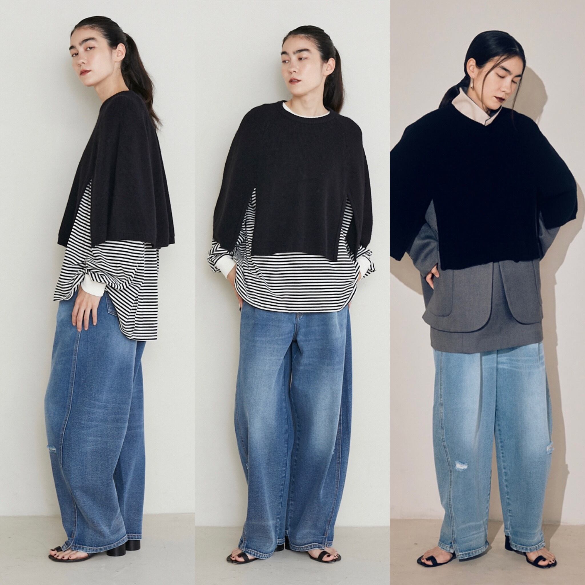 PRE-FALLコレクションで人気のあったケープ型ニットトップスを素材を替えてアップデートしました。