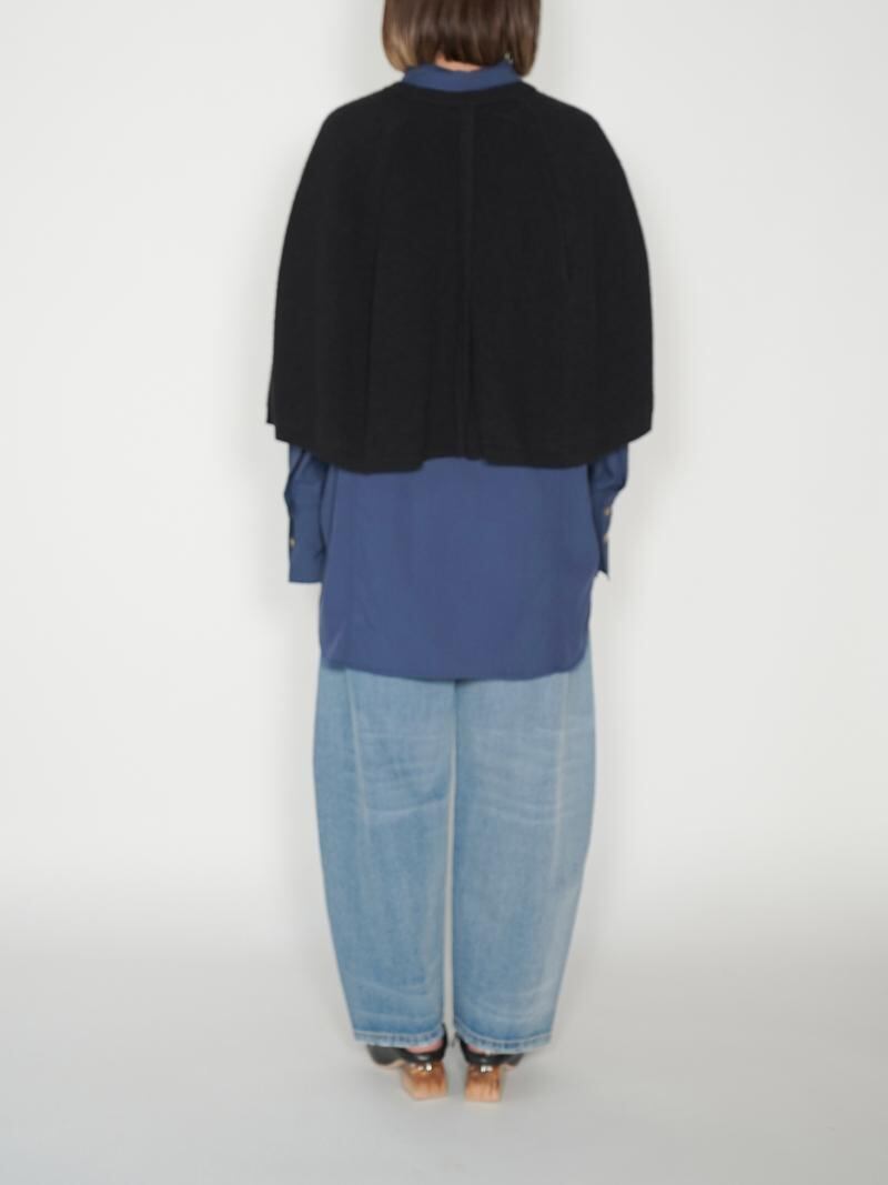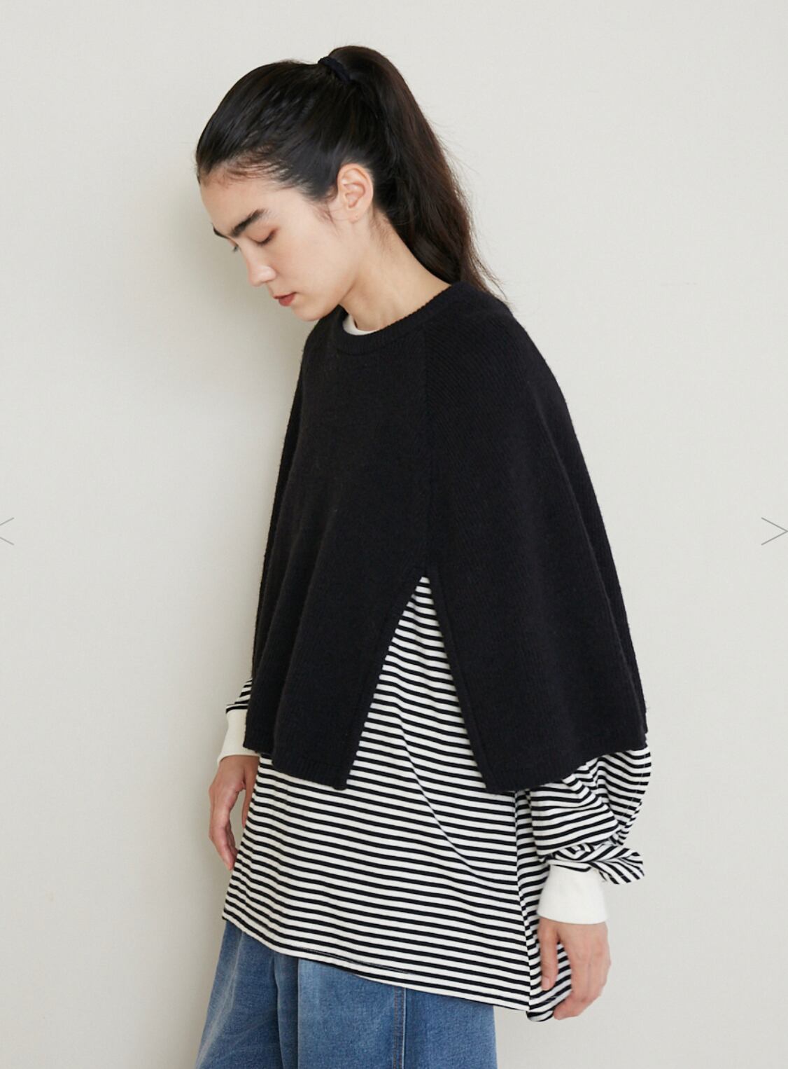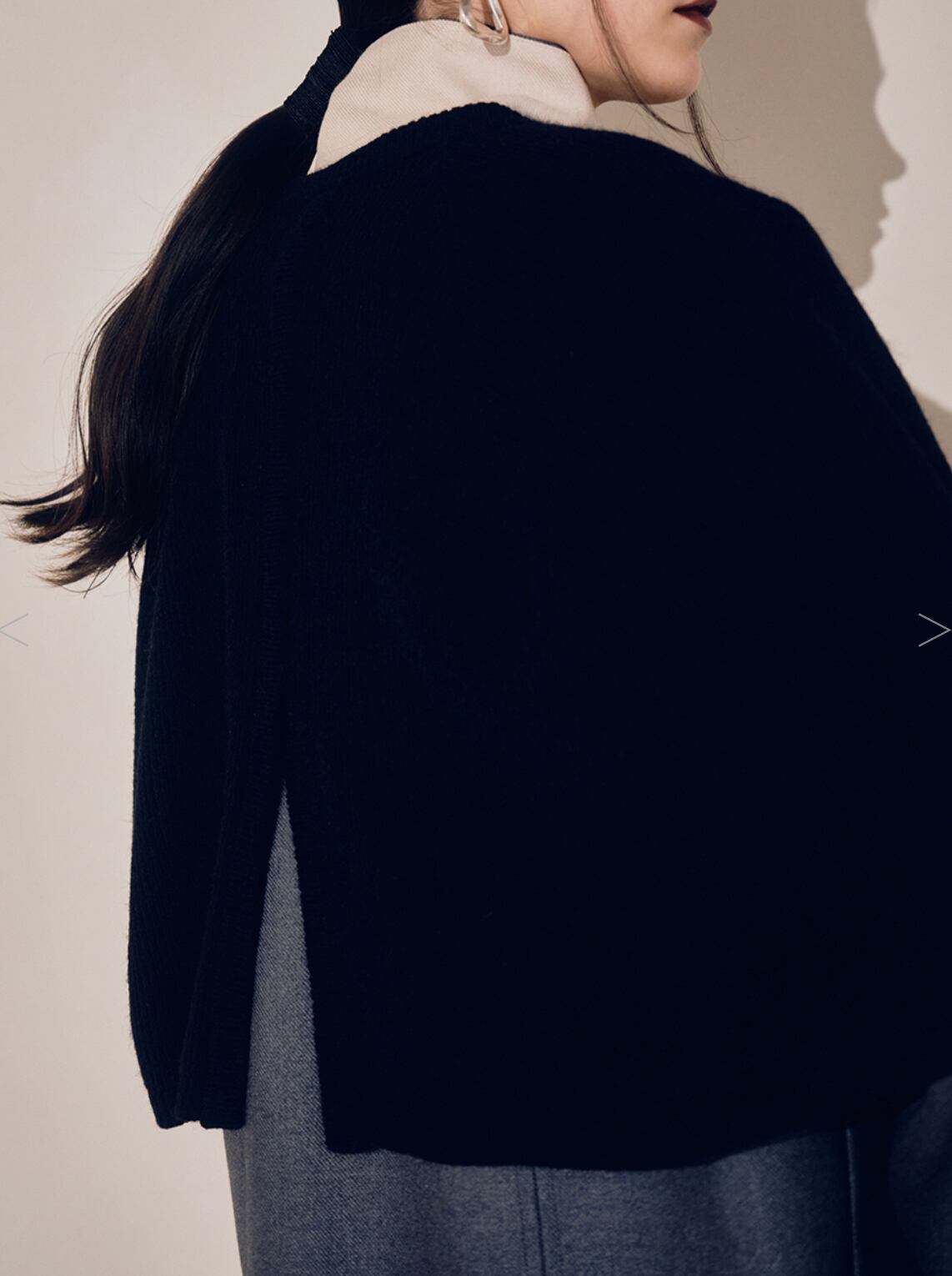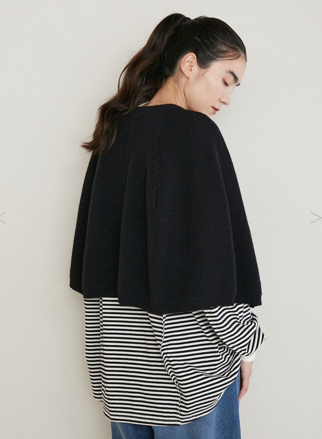 BLACKに加えてCAMELの色を新色として追加しました。 秋には、シャツやカットソー、ニットの上にカーディガン代わりにレイヤードしていただいたり、ジャケットの上にレイヤードさせても上級者のレイヤードスタイルが完成します。 ケープトップスの上からジャケットやコートを羽織っても違和感なく着用いただけます。少し寒くなった時のプラスワンとしても持ち運びやすく便利な1枚です。