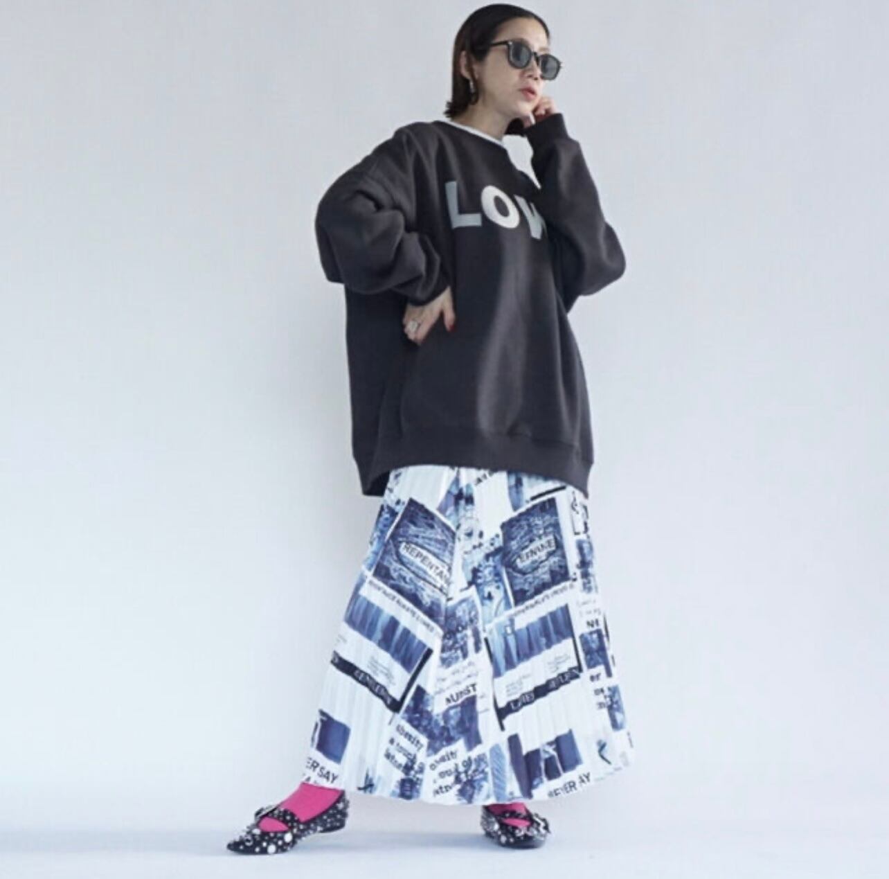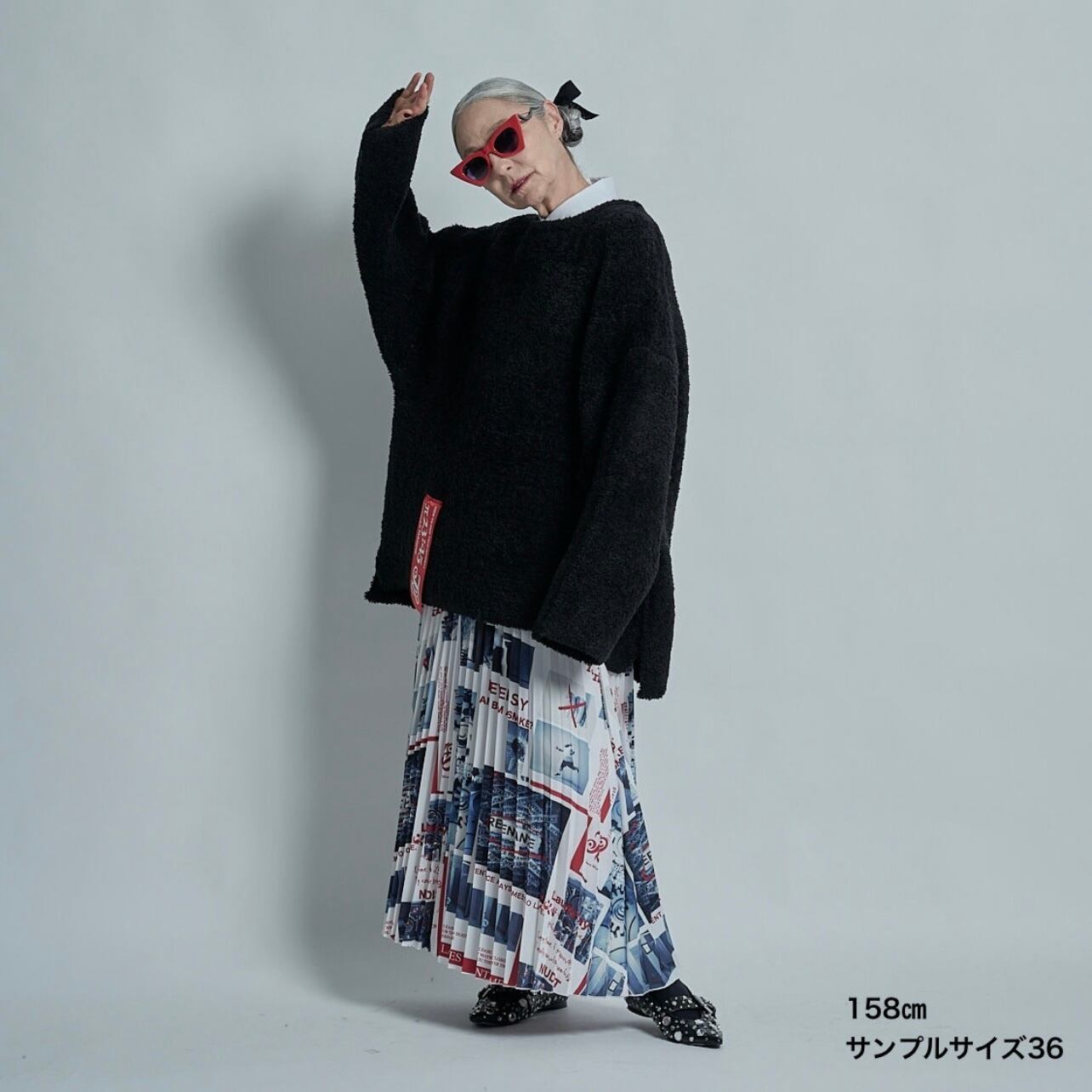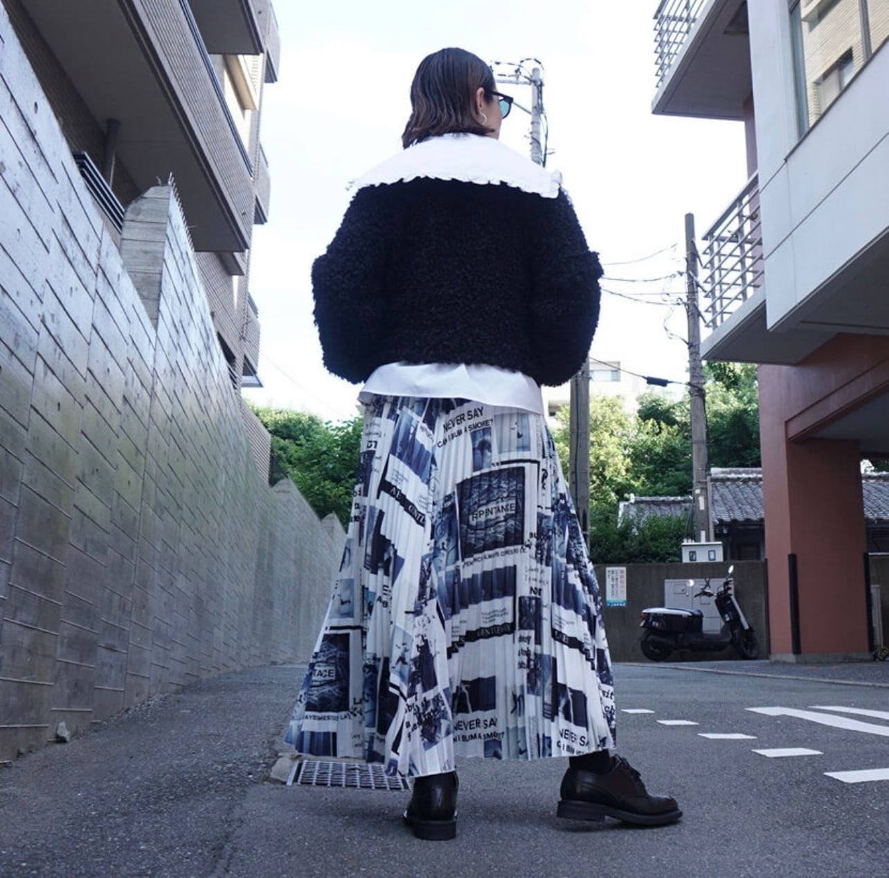 オリジナルのプリントはこれまでにもいくつか作ってきましたが、今回はフォトを少し大きめにしてランダムにして並べています。ちょっとモードな感じがして気に入っています。お勧めはレッド。ウエストのレッドのベルトも引き締まって見えてカラーリングが気に入っています。今回は予約からは外す予定のアイテムでしたが、撮影の際に、スタッフがとても可愛いのでぜひに、という声が上がり、予約を取る事に決めました。万能で1枚あると便利で楽しめて使えるアイテムだと思います。